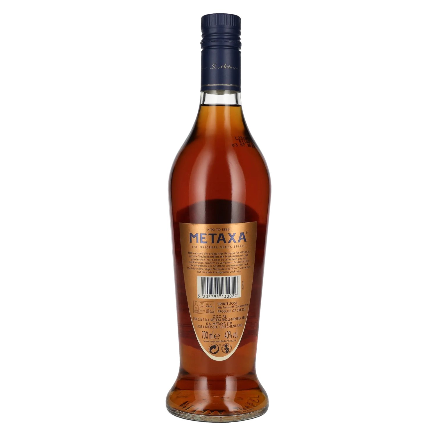 Hersteller/Destillerie:S.& E. & A. METAXA A.B.E, 6 A. Metaxa Str., 145 64 Kifissia, Griechenland