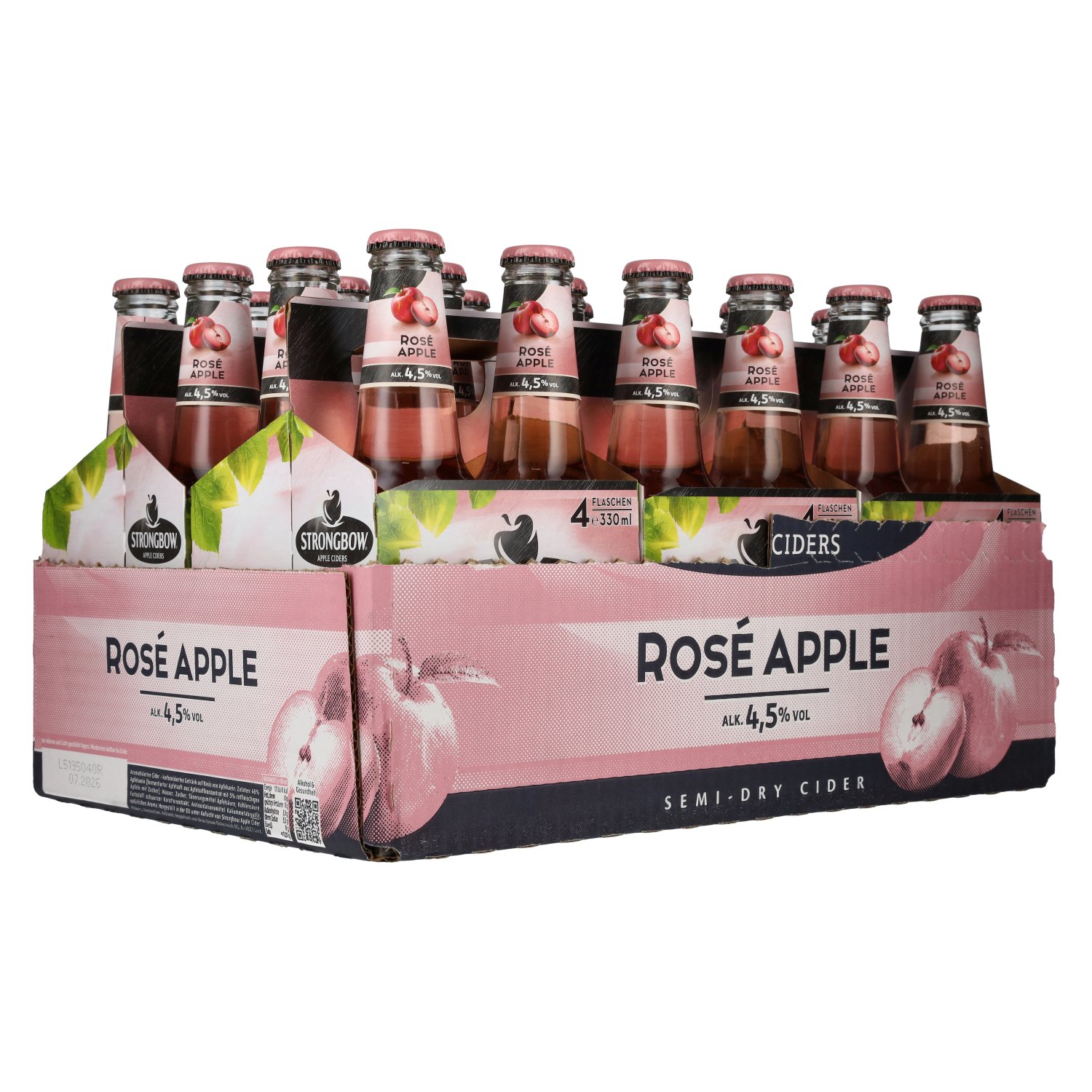Der Strongbow Cider Rosé Apple ist eine moderne Interpretation klassischen Apfel-Ciders aus dem Hause Strongbow. Diese Variante kombiniert ausgewählte Äpfel mit einem Hauch roter Früchte und präsentiert sich als fruchtbetonter Rosé Cider mit klarer, erfrischender Stilistik. Mit einem Alkoholgehalt von 4,5 % und abgefüllt in der praktischen 0,33 l Flasche, wird dieser Cider im 6x4 Tray (24 Flaschen) geliefert und eignet sich ideal für gesellige Anlässe, Gastronomie oder größere Events.