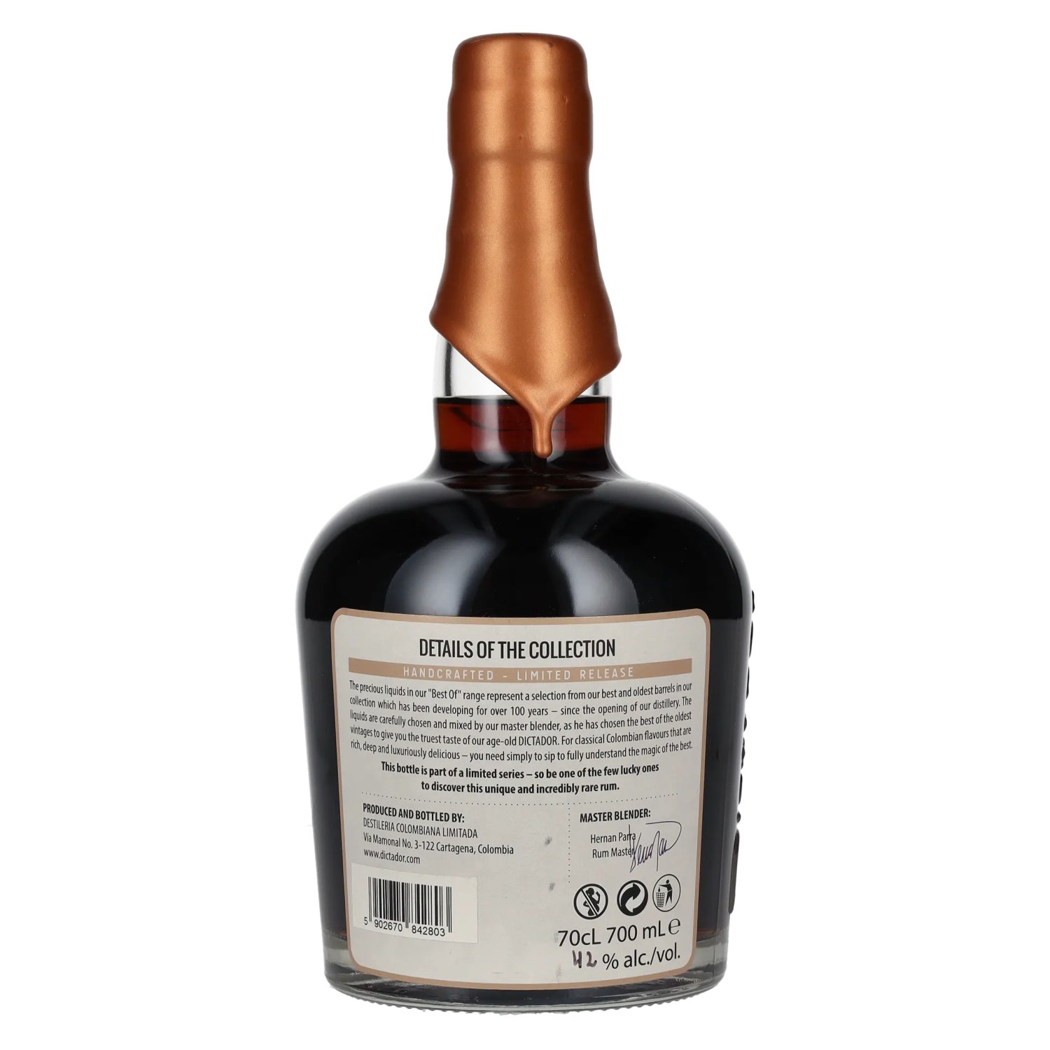 Die 'Best Of'-Reihe von Dictador beinhaltet eine Auswahl von den besten und ältesten Fässern der Destileria Colombiana. Die Fässer, welche von Master Parra sorgfältig auserwählt werden, sind amerikanische Eichen-, Sherry- oder Port Fässer.