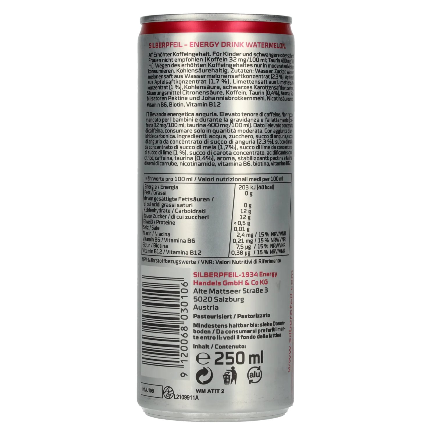 Hersteller/Destillerie:SILBERPFEIL - 1934 Energy Handels GmbH & Co. KG, Alte Mattseer Straße 3, 5020 Salzburg, Österreich