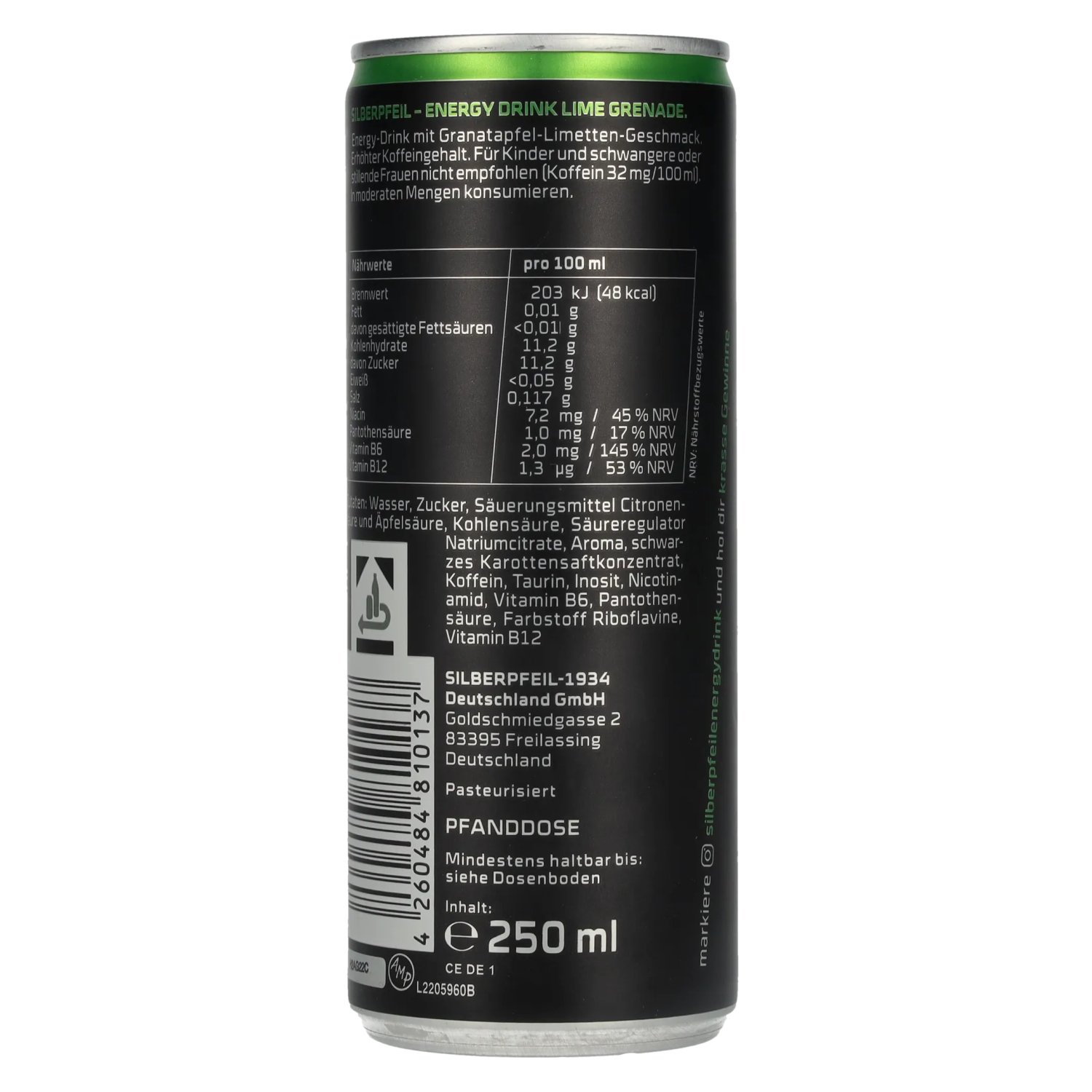Marke: Hinweise:Erhöhter Koffeingehalt. Für Kinder und schwangere oder stillende Frauen nicht empfohlen (Koffein 32 mg/100 ml). In moderaten Mengen konsumieren.