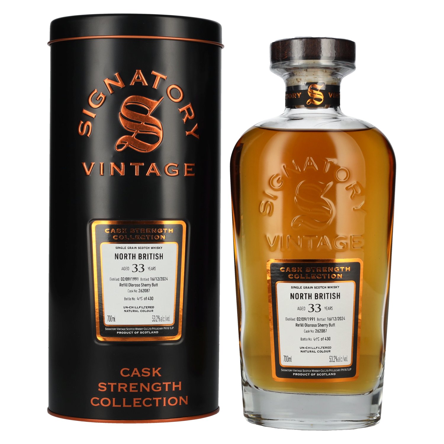 Signatory Vintage NORTH BRITISH 33 Years Old Refill Oloroso Cask Strength #262087 1991 53,2% Vol. 0,7l in Tinbox