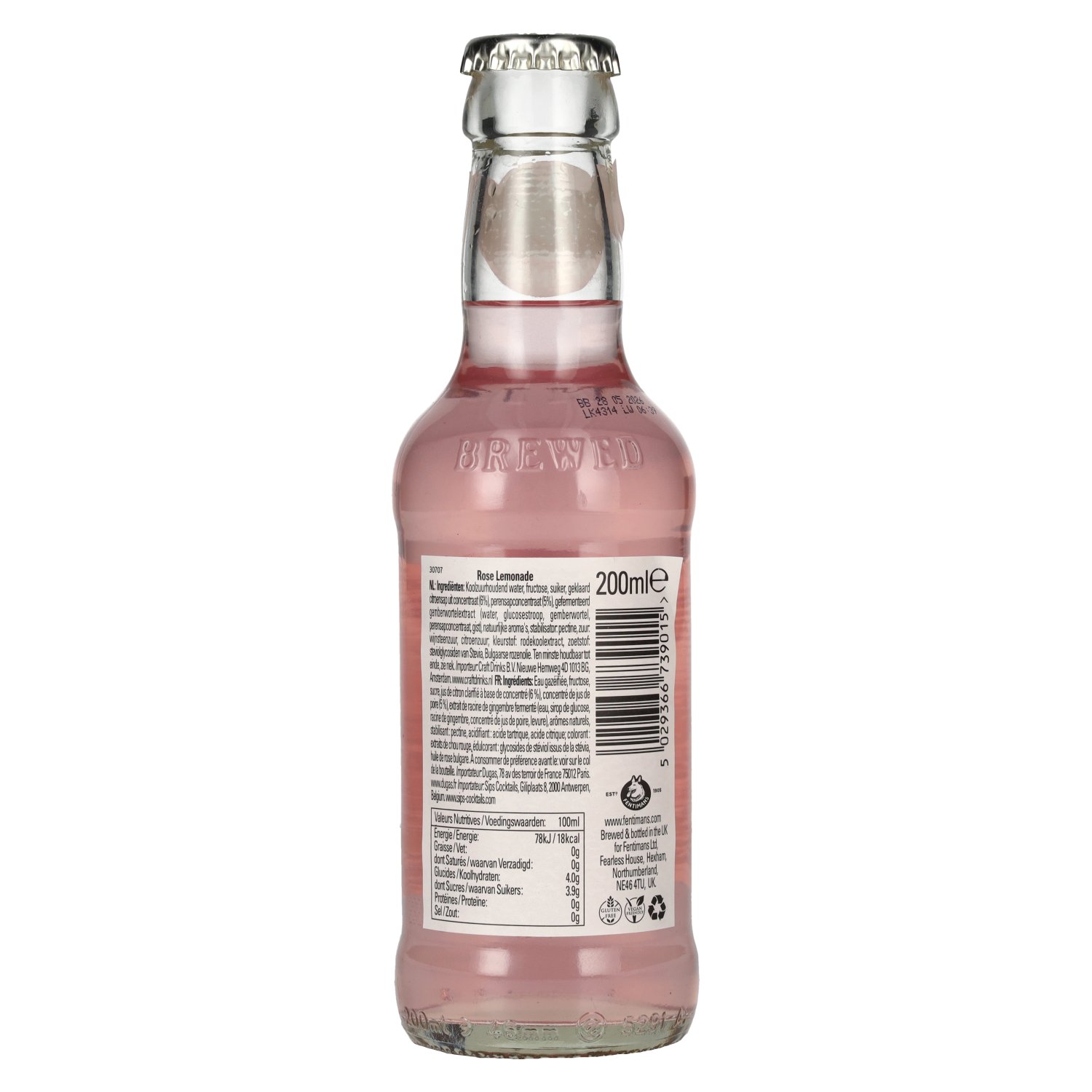 Die Rose Lemonade vereint frische Zitronen mit ätherischem Öl der berühmten bulgarischen "Rose Otto". Das sorgt für eine fein abgestimmte Balance aus spritziger Zitrusfrische und einer eleganten, floralen Note. Dank der praktischen 0,2 l Glasflaschen ist das Getränk nicht nur perfekt für die Gastronomie, Bars und Hotels geeignet, sondern auch ideal für Veranstaltungen, Caterings oder private Feiern. Jede Flasche steht für höchste Qualität, Handwerkskunst und den Anspruch von Fentimans, natürliche und außergewöhnliche Getränke zu kreieren. Verkosternotiz: Farbe: Zart rosé mit sanfter Kohlensäure.