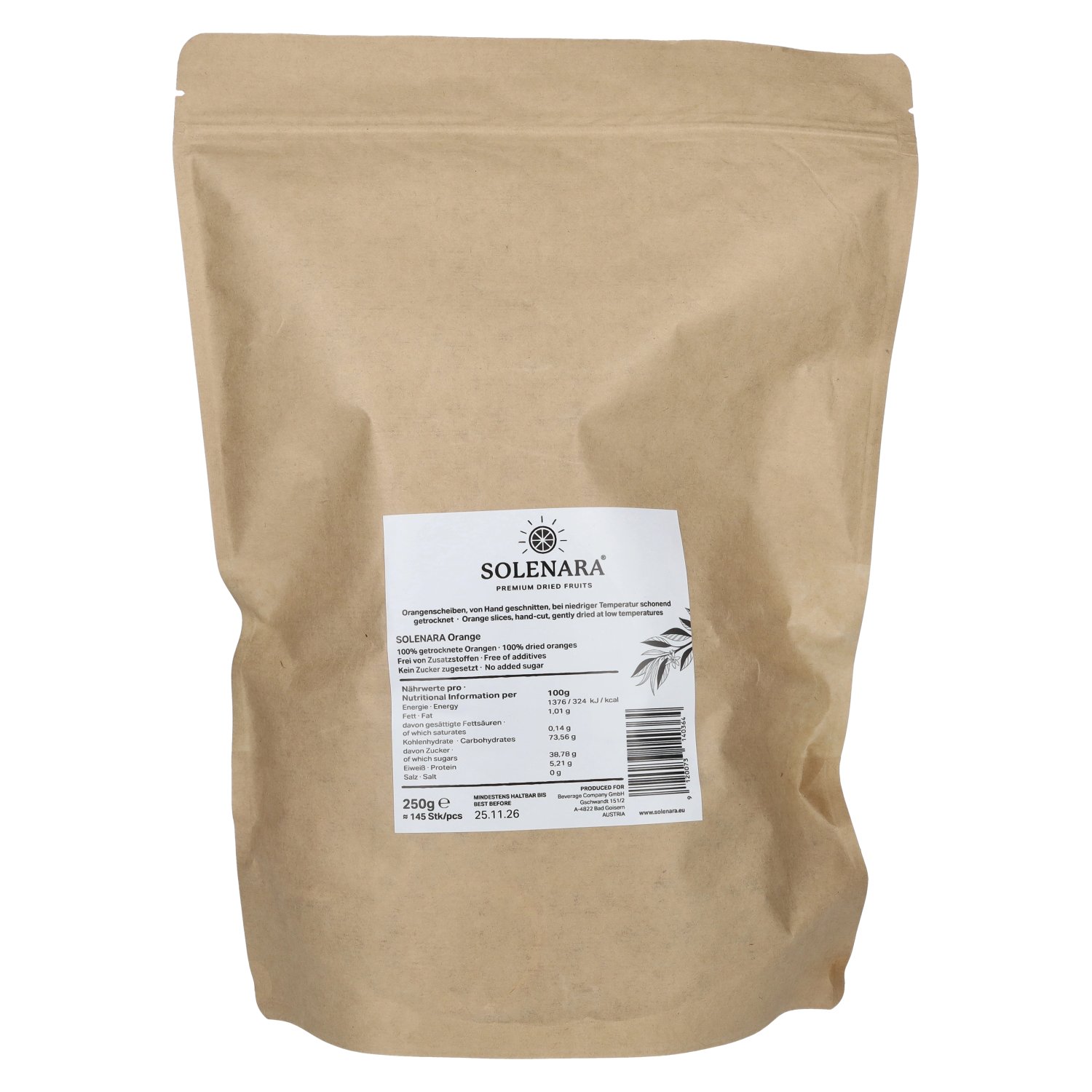 Marke: Hinweise:100% getrocknete Orangen. Frei von Zusatzstoffen, kein Zucker zugesetzt.