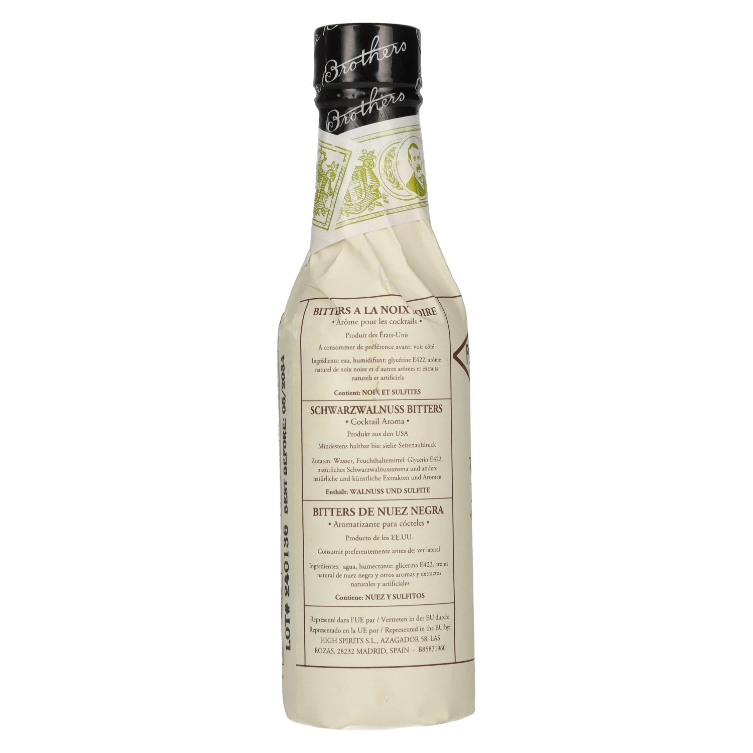 Marke: Zutaten:Wasser, Feuchthaltemittel: Glycerine E422, natürliches Schwarzwalnussaroma und andere natürliche und künstliche Extrakten und Aromen, enthält Walnuss und Sulfite