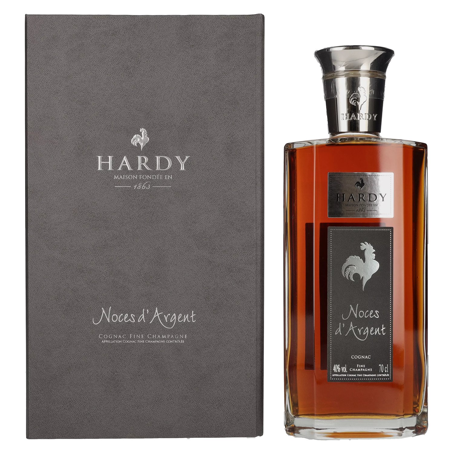 The Hardy Cognac Noces d'Argent is an exclusive premium bottling that embodies the tradition and elegance of the House of Hardy to perfection. The name "Noces d'Argent" stands for the silver wedding anniversary and symbolizes the noble maturity of this cognac. With an alcohol content of 40% vol. in a 0.7-liter bottle, presented in a stylish gift box (UK), this cognac is an exceptional choice for discerning connoisseurs.