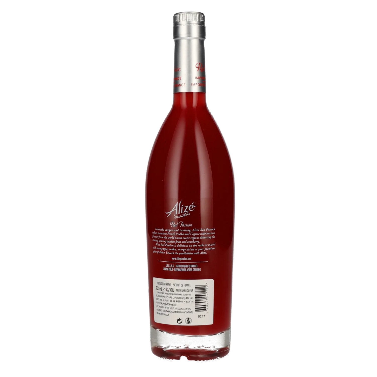 Brand: Ingredients:Vodka (at 40% vol.), 7,39% Cognac (at 40% Vol., 2,93% Passion fruit juice from concentrate, cranberry flavour.