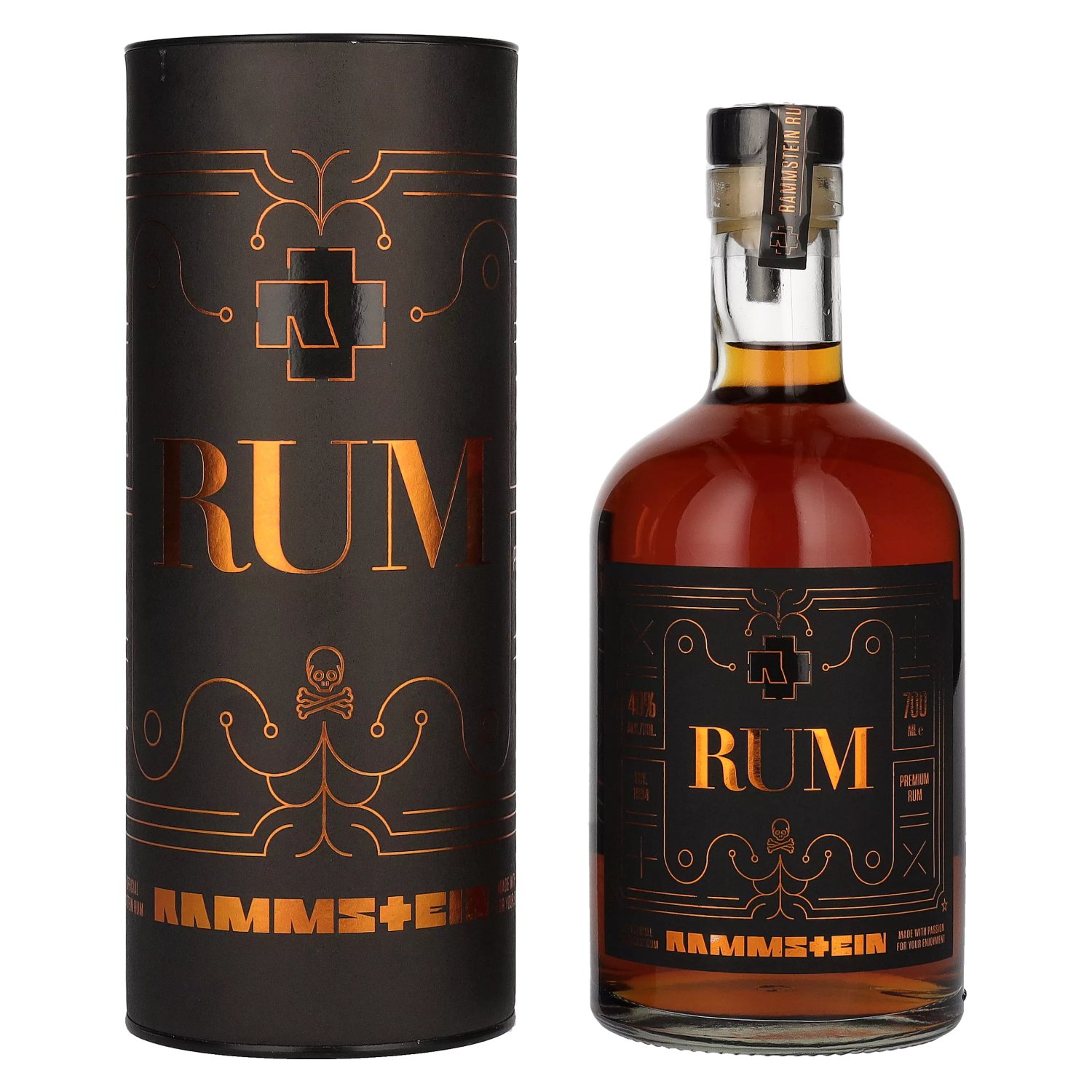 Rammstein Premium Rum is an exclusive spirit that embodies the powerful energy and characteristic style of the world-famous German rock band Rammstein. Founded in 1994, Rammstein has become one of the most influential bands in the world with their unique sound of industrial, metal and electronic music. With hits such as "Du Hast", "Sonne" and "Feuer Frei!", the band has thrilled their fans worldwide and their spectacular live performances are as notorious as their provocative lyrics.