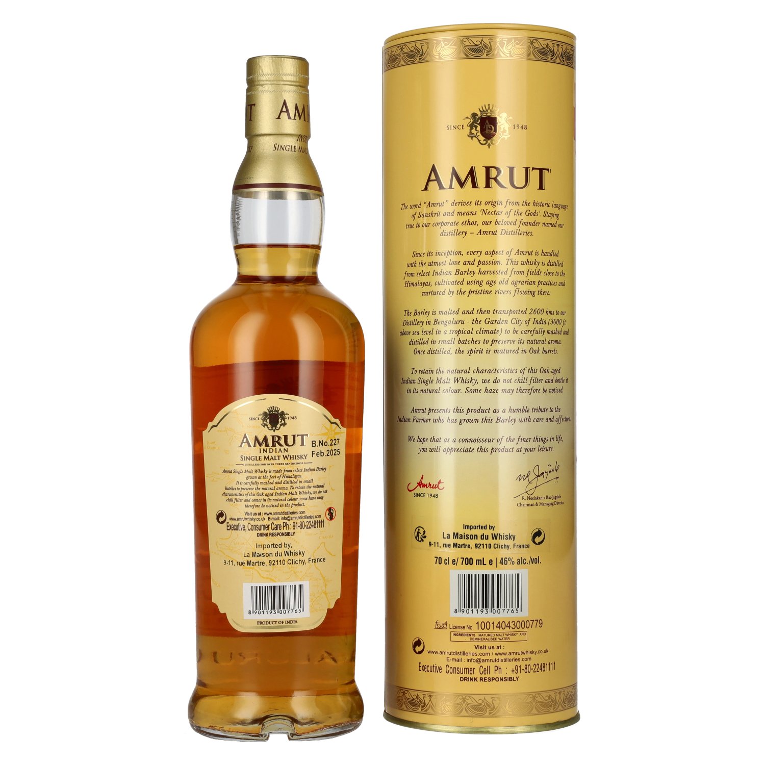 Producer/Distillery:Amrut Distilleries Private Ltd, (N.R.Jagdale Group), 7th Floor, JNR City Center, Raja Rammohan Roy Road, Bengaluru - 560027, Indien