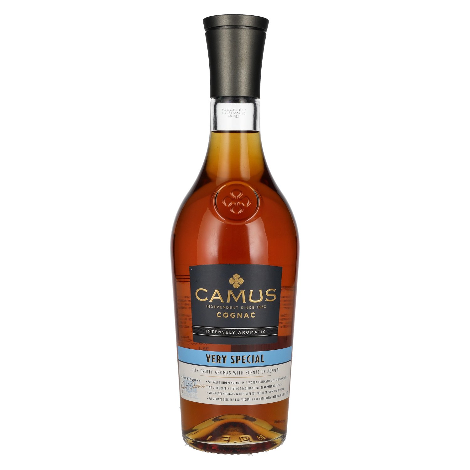 The Camus Very Special Intensely Aromatic Cognac is a premium bottling from the renowned house of Camus, which has been known for its craftsmanship and exceptional quality since 1863. This cognac stands for a particularly intense aroma, which is achieved through the careful selection and distillation of the best wines from the Charente region.
