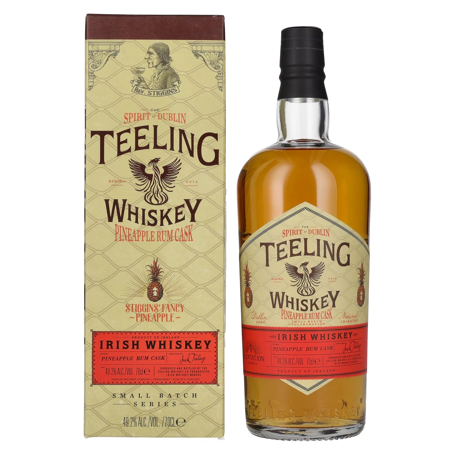 This exceptional combination was created through the close collaboration between Teeling Whiskey and Plantation Rum, two renowned producers who brought their respective expertise to this unique project. The Teeling whiskey is first matured in ex-bourbon barrels, which gives it its characteristic depth and structure. The whiskey is then finished in Stiggins' Fancy Pineapple Rum Casks, which gives it an additional layer of flavors characterized by the sweet, fruity notes of Caribbean rum.