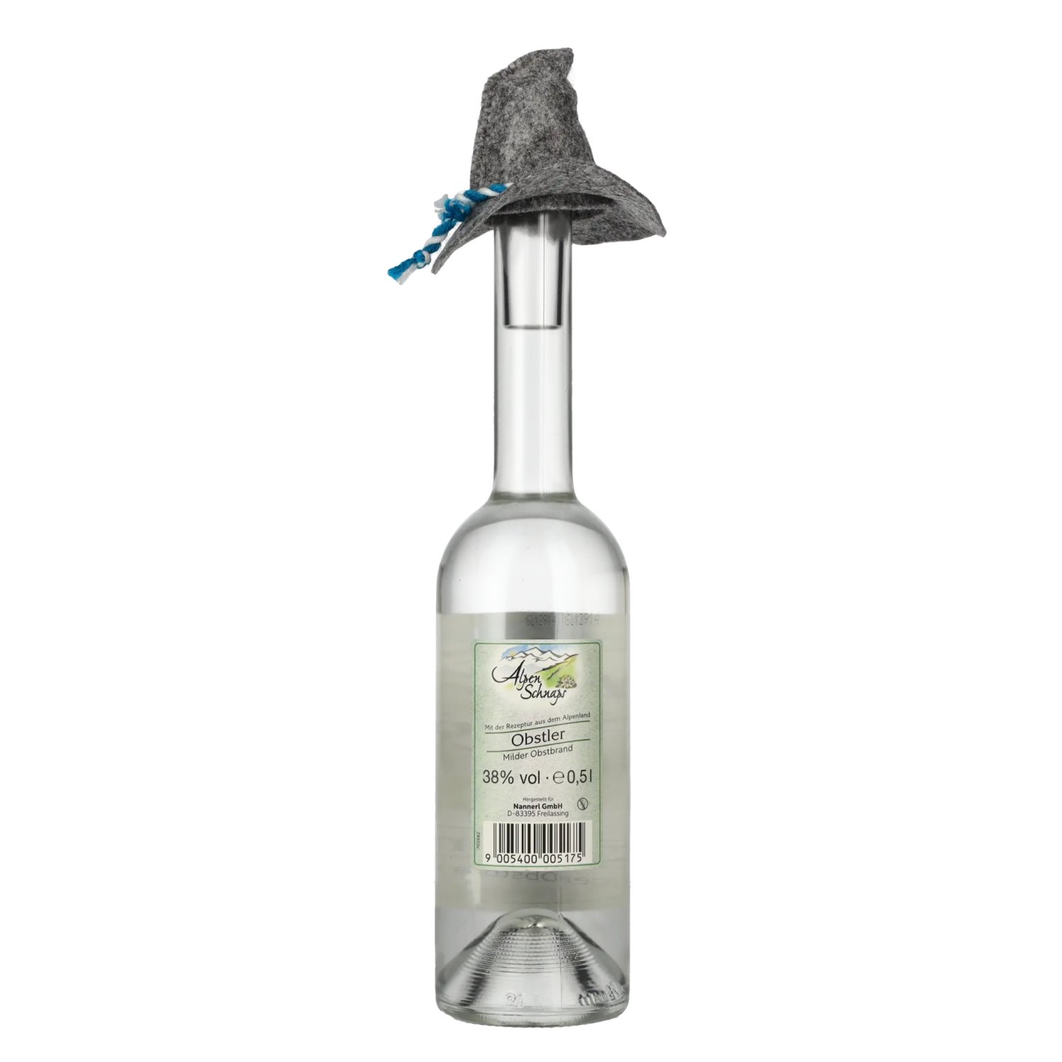 Nannerl Alpenschnaps OBSTLER 38% Vol. 0,5l with Filzhut