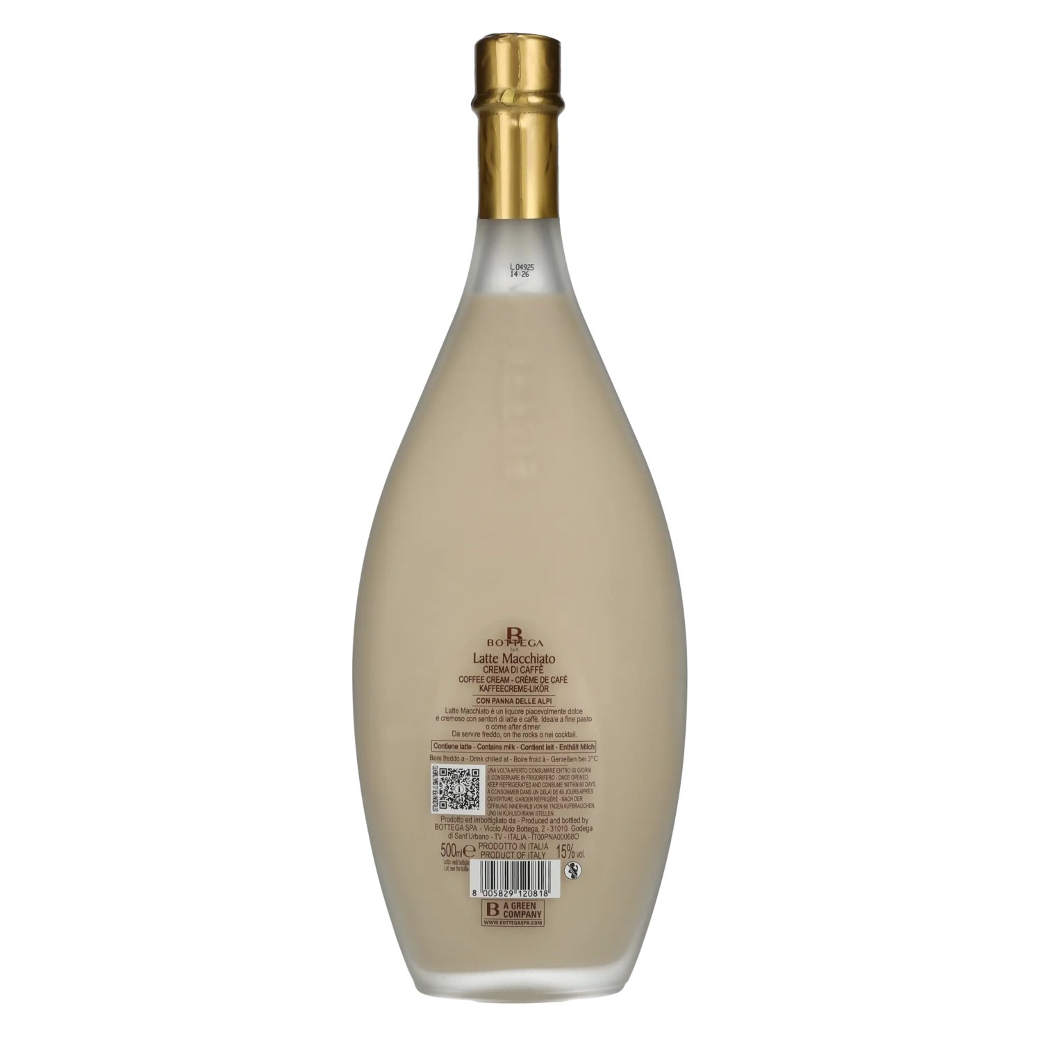 This tincture is then mixed with a sweet, velvety milk cream, giving the Latte Macchiato Bottega its characteristic texture. A final touch of grappa is added to give it a special aroma that makes it unique and unmistakable. (automated translation) Tasting notes: Color: Creamy light brownish cream.