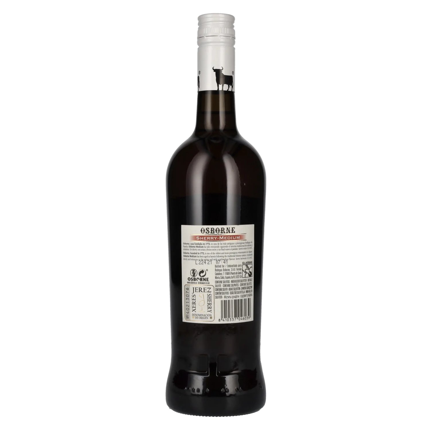 Osborne Sherry Medium is matured using the solera method, a traditional ageing process in which different vintages are blended together over a period of years. This method gives the sherry its characteristic complexity and depth. With an alcohol content of 15 % vol., this medium sherry is a balanced interplay between the freshness of a fino and the sweeter, rich texture of an oloroso. The result is a full-bodied sherry with a harmonious balance of dryness and sweetness that will delight in both the cold and warm seasons. (automated translation) Tasting notes: The Osborne Sherry Medium presents itself in the glass in a warm, golden brown color, which impresses with its depth and clarity. The nose reveals a complex interplay of aromas of dried fruits such as apricots and figs, paired with delicate nutty notes and a light vanilla spice. A hint of caramel and honey rounds off the bouquet and gives the sherry a pleasant sweetness. On the palate, this medium sherry is soft and round, with a pleasant but present sweetness that is balanced by a gentle acidity. The aromas of dried fruit, nuts and spices are wonderfully integrated and offer a long, harmonious finish.