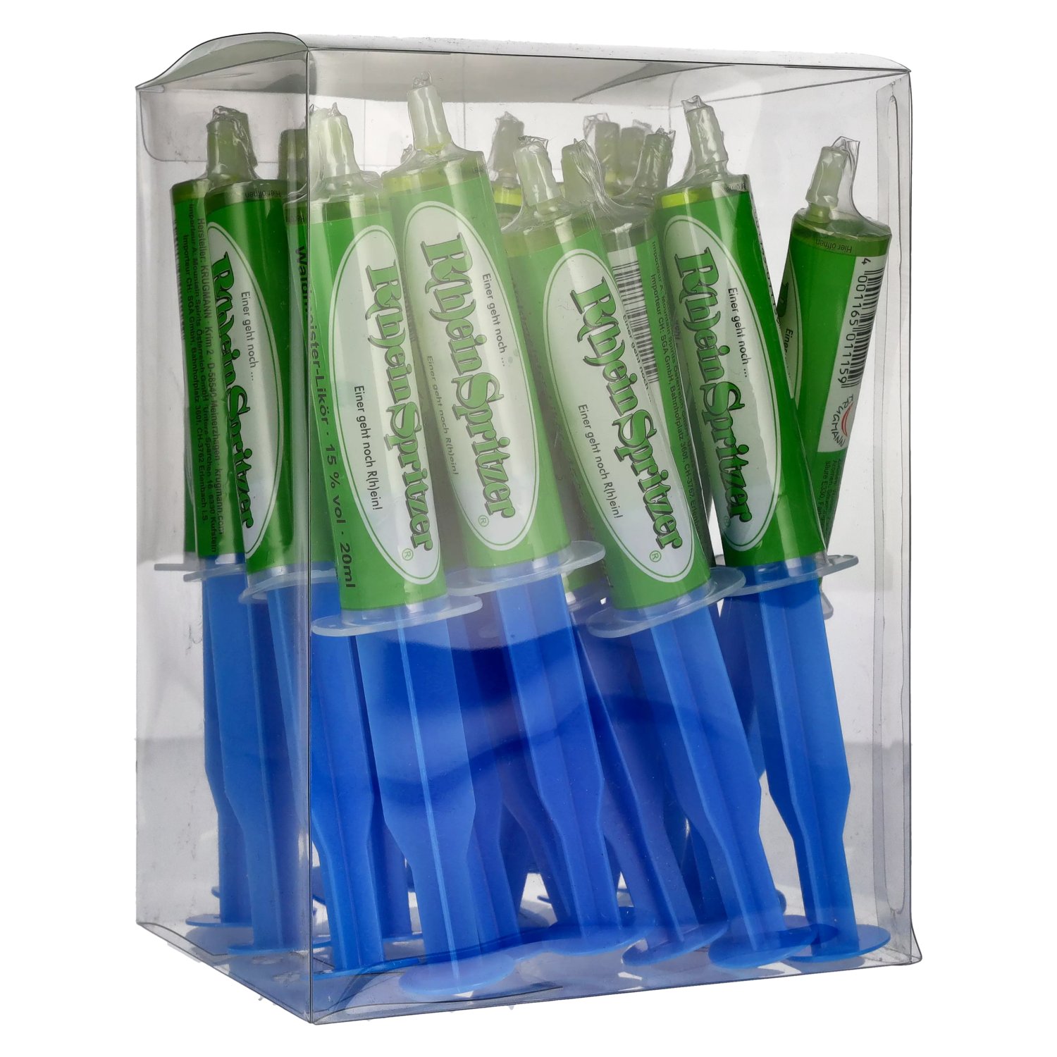 The Krugmann R(h)einspritzer woodruff liqueur brings color, fun and taste to your glass - in a practical set of 20 0.02-liter bottles. With an alcohol content of 15% by volume, this liqueur offers a sweet and fresh drinking experience that is ideal for parties, stag parties, celebrations and events. The R(h)einspritzer is produced by the traditional Krugmann distillery, which has been known for generations in the Sauerland region for innovative spirits with a cult factor.