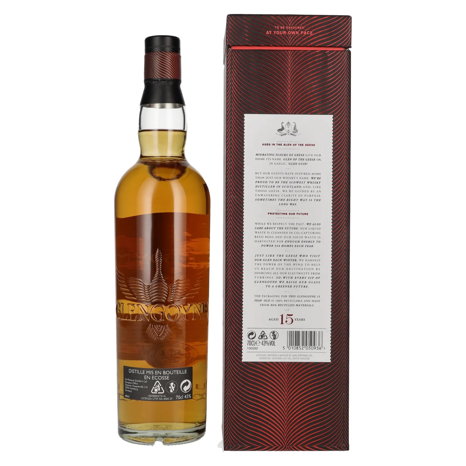 The packaging for this Glengoyne 15 Year Old is 100% recyclable and made from 86% recycled materials.