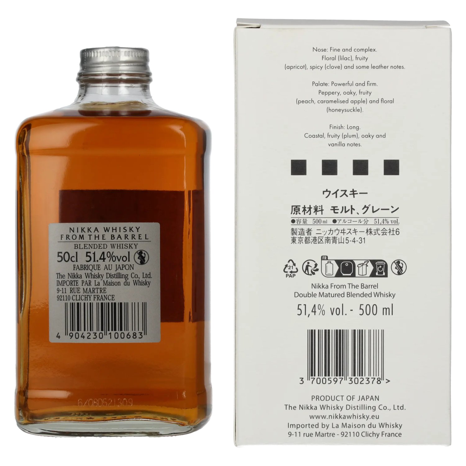 Two Nikka single malts, Miyagikyo and Yoichi, as well as a single grain whisky are married for this whisky. The whisky is matured in both bourbon and sherry casks.