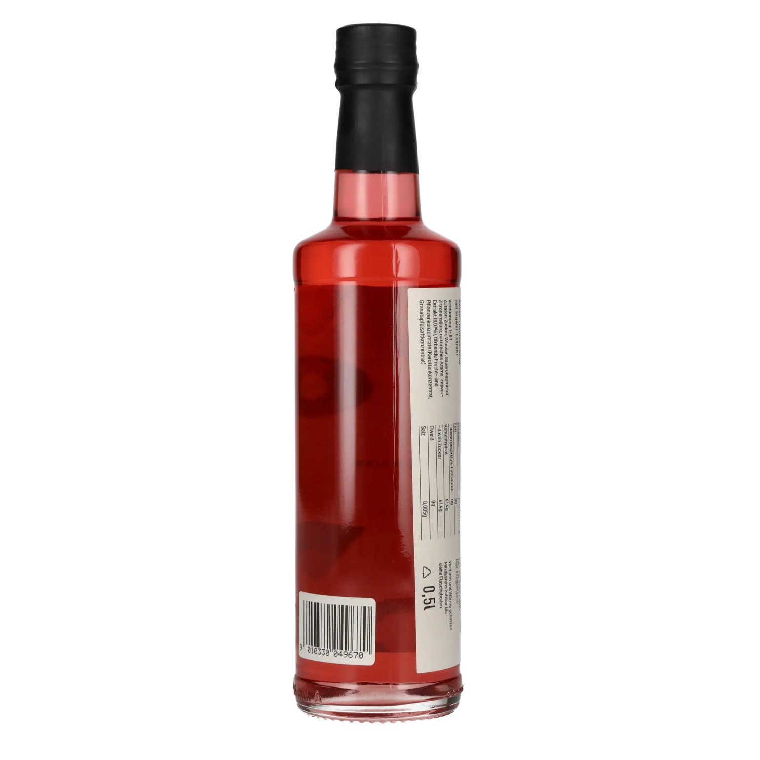 Ingredients:Zucker, Wasser, Säuerungsmittel Zitronensäure, natürliches Aroma, Ingwer-Extrakt (0,07%(, färbende Frucht- und Pflanzenkonzentrate (Karottenkonzentrat, Granatapfelsaftkonzentrat)