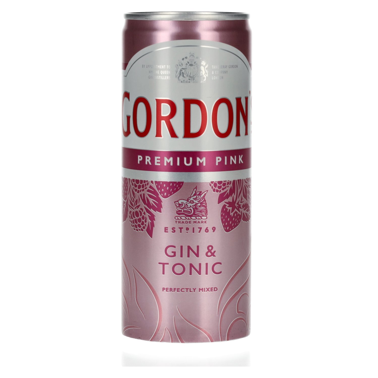 The Gordon's Premium Pink Gin & Tonic 6.4% vol. 0.25 l can is the handy ready-to-drink version of the popular classic, which combines the fruity-sweet character of Gordon's Premium Pink Gin with the sparkling freshness of tonic water. Since 1769, the Gordon's brand has been synonymous with authentic London gin tradition and the highest quality, which is implemented here in an uncomplicated and ready-to-serve form.