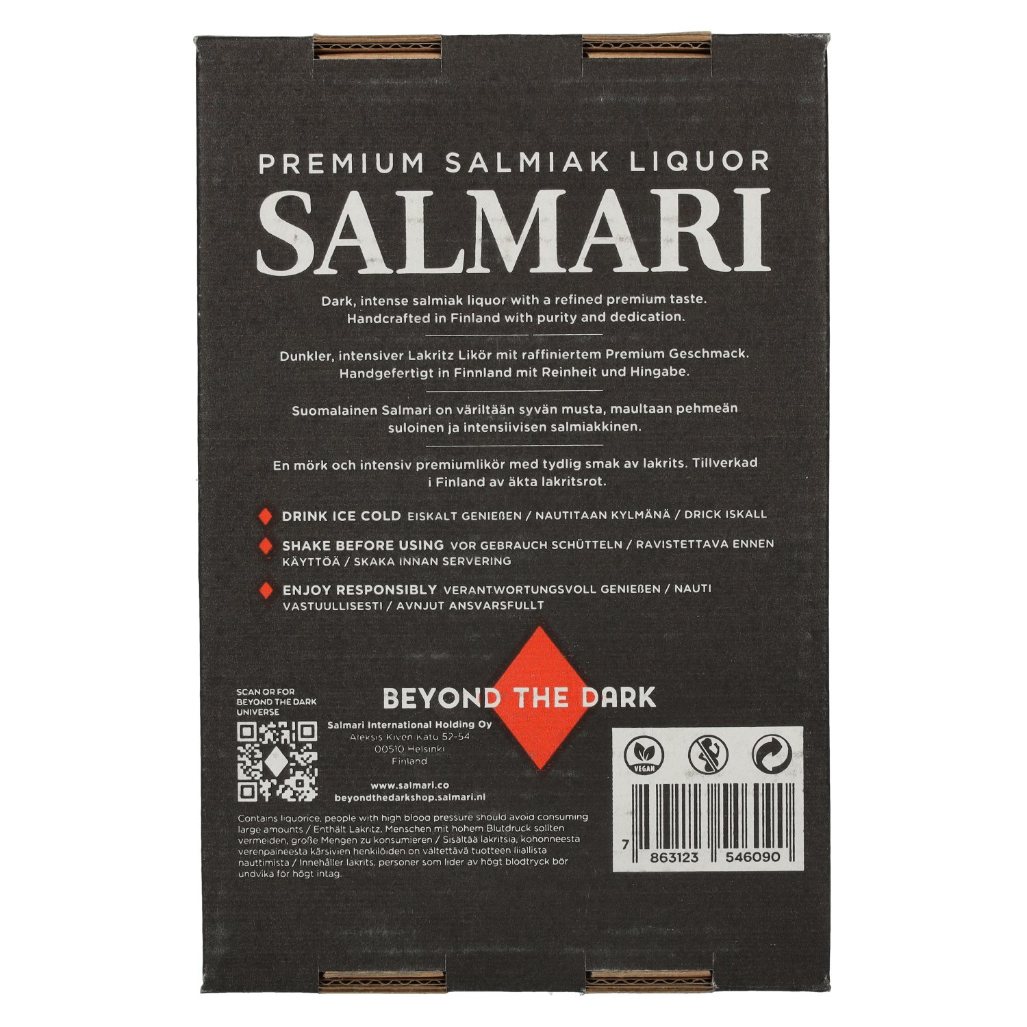 Salmari Premium Salmiak Liqueur is traditionally served well chilled as a shot and is particularly popular at parties or festivals. It goes perfectly with social gatherings, but can also be used creatively - for example as a special ingredient in cocktails, long drinks or even in combination with beer (known from Scandinavia). It can also add an unusual licorice note to desserts such as ice cream or chocolate creations. (automated translation)