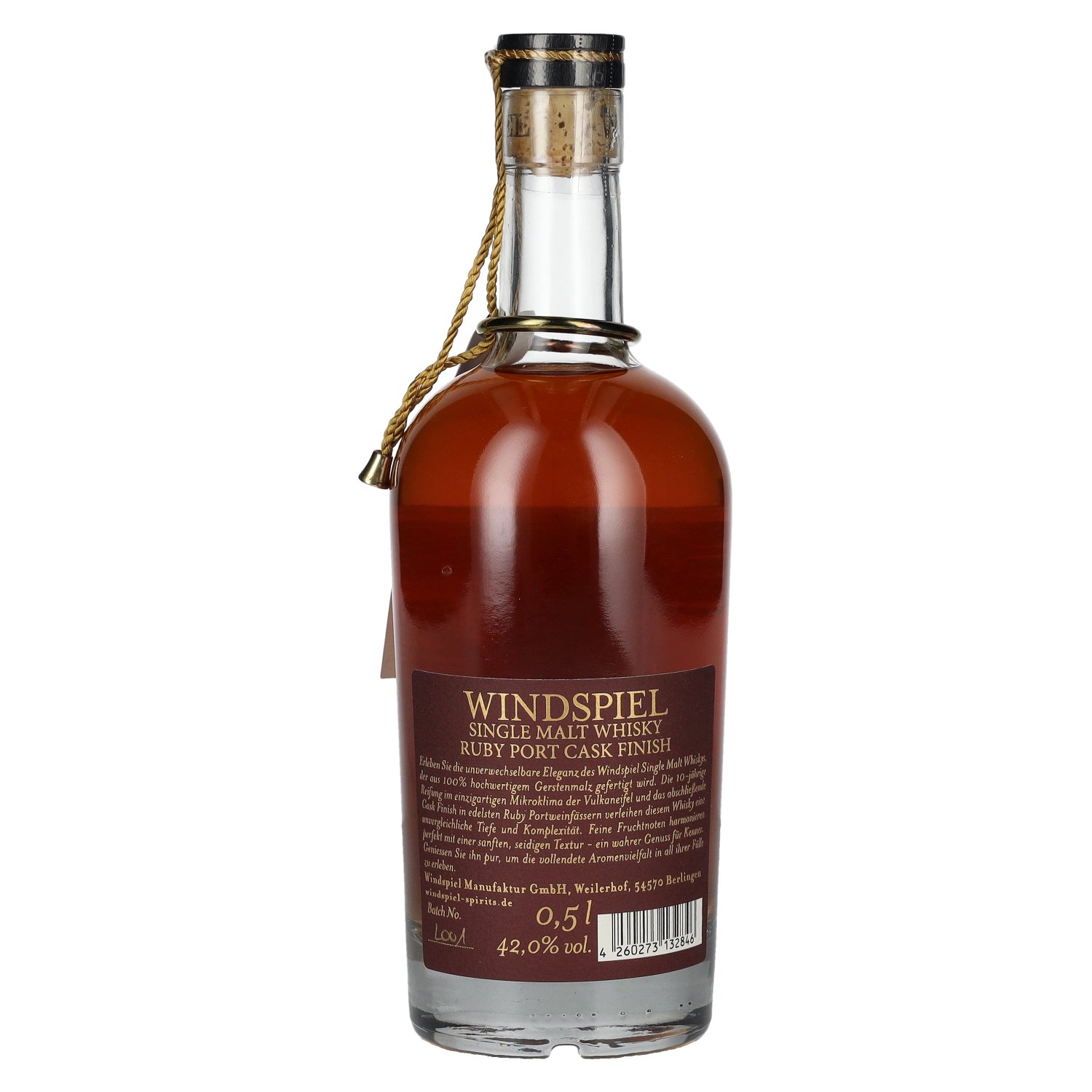 The Windspiel 10 Years Old Port Cask Finish Single Malt Whisky is an ideal moment of pleasure for connoisseurs. It unfolds its full aroma neat at room temperature or with a drop of water. It is an excellent culinary accompaniment to strong cheeses such as blue cheese or matured cheddar, as well as game dishes and spicy ham. The combination with desserts is particularly exciting: dark chocolate, chocolate fondant, crème brûlée or fruity tarts with berries highlight the port notes. This whisky is also an elegant companion to a good cigar. (automated translation)