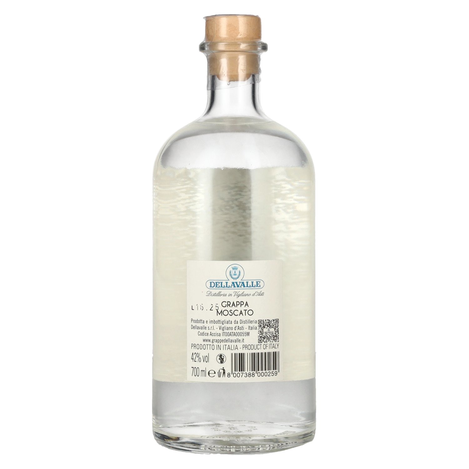 Dellavalle Grappa Moscato comes from the renowned Distilleria Dellavalle in Vigliano d'Asti and reveals the aromatic elegance of the Muscat grape in a particularly pure form. For this clear, fragrant grappa specialty, only fresh Moscato pomace from Piedmont is used, which is distilled in small copper stills to preserve its aroma. Since 1983, the young, family-run company has stood for quality craftsmanship and the precise implementation of traditional distilling methods, which gives this grappa its distinctive varietal character. The clearly structured aroma, fine muscat sweetness and natural lightness make Dellavalle Grappa Moscato a particularly accessible and elegant representative of its category. Bottled at 42% by volume, it remains soft, delicately fruity and pleasantly mild in expression.