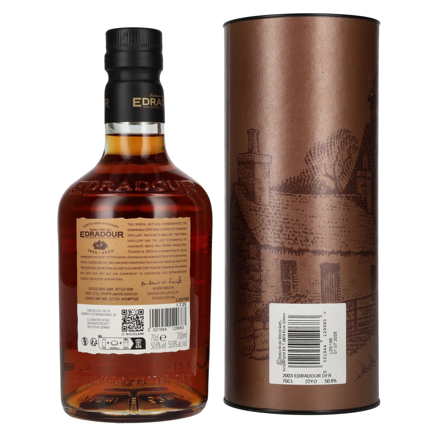 Edradour 22 Years Old 200th Anniversary Amarone Cask Highland Single Malt Whisky 50,8% Vol. 0,7l in Giftbox