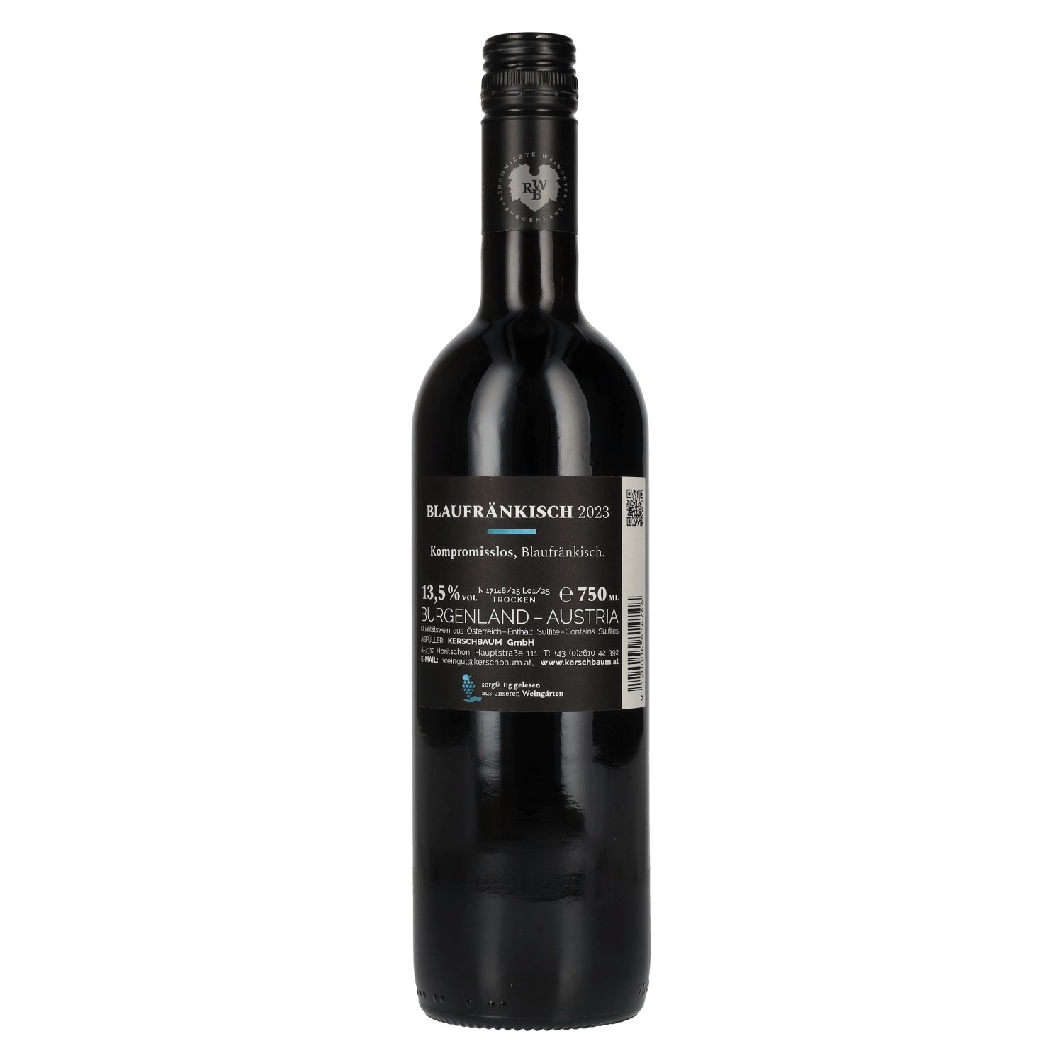 The precise vinification, the careful selection of grapes and the differentiated use of wood result in a Blaufränkisch that is both versatile in culinary terms and convincing as a soloist. Central Burgenland is regarded as a region of origin for powerful, finely structured red wines and, with its soils and Pannonian microclimate, has a particular influence on the style of this wine. The Kerschbaum Blaufränkisch combines regional tradition, modern cellar technology and elegant lines to create a harmonious, versatile red wine that cuts an excellent figure both in a gastronomic context and for private enjoyment. (automated translation) Tasting notes: Dark ruby garnet in the glass with violet reflections and a delicate watery rim. Ripe cherry fruit, herbal notes, a hint of plum and fine orange zest on the nose. Juicy and elegant on the palate with a fine tannin structure, blackberry nuances, delicate saltiness and red cherries. The finish is persistent, clearly structured and long-lasting.
