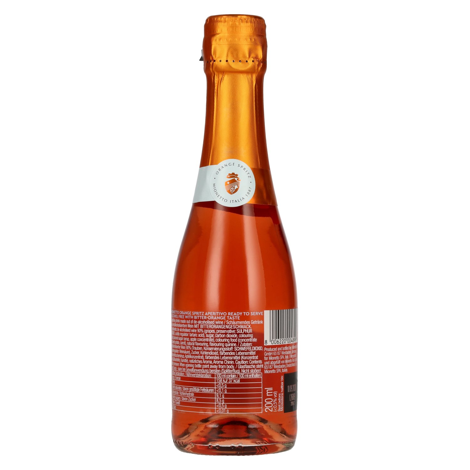 Ingredients:entalkoholisierter Wein 90% (Trauben, Konservierungsstoff: Schwefeldioxid, Säureregulator: Weinsäure), Zucker, Kohlendioxid, färbendes Lebensmittel (Karamellzuckersirup, Apfelkonzentrat), färbendes Lebensmittel (Konzentrat aus Süßkartoffel, Karotte), natürliches Aroma, Aroma Chinin