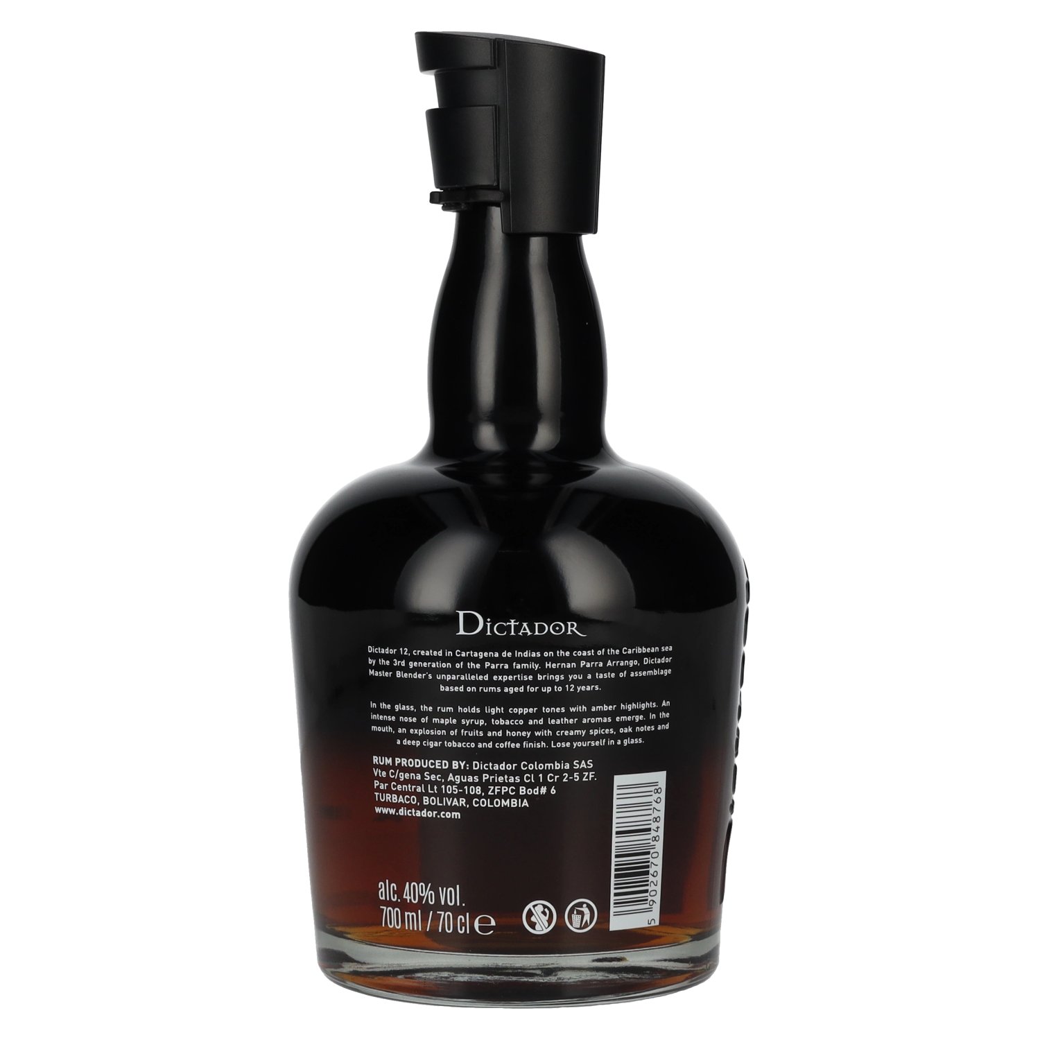 Le Dictador 12 Years Old ICON RESERVE est un rhum colombien noble qui convainc par son vieillissement minutieux et sa diversité aromatique exceptionnelle. Ce rhum premium est distillé à partir de miel de canne à sucre fermenté et mûrit ensuite jusqu' Note de dégustation: Couleur : ambre profond avec des reflets dorés.