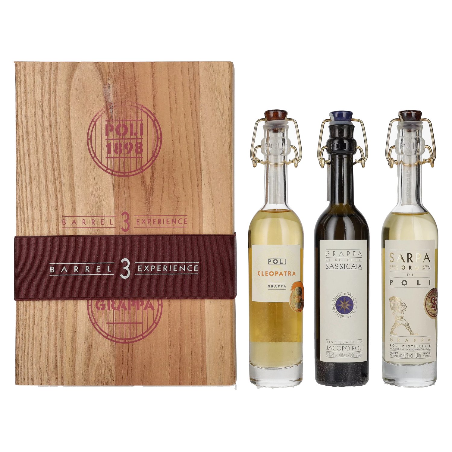 Poli Grappa Baby Pack ORO 40% Vol. 3x0,1l in Holzkiste