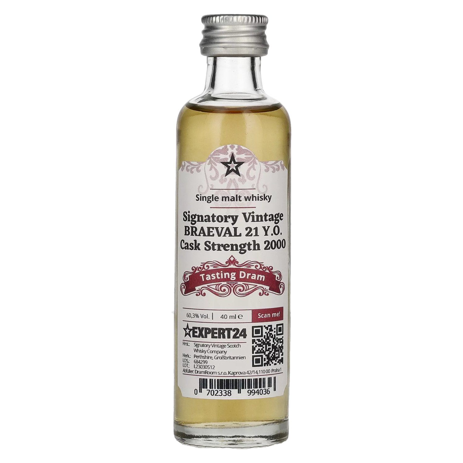 Signatory Vintage BRAEVAL 21 Years Old Cask Strength 2000 60,3% Vol. 0,04l