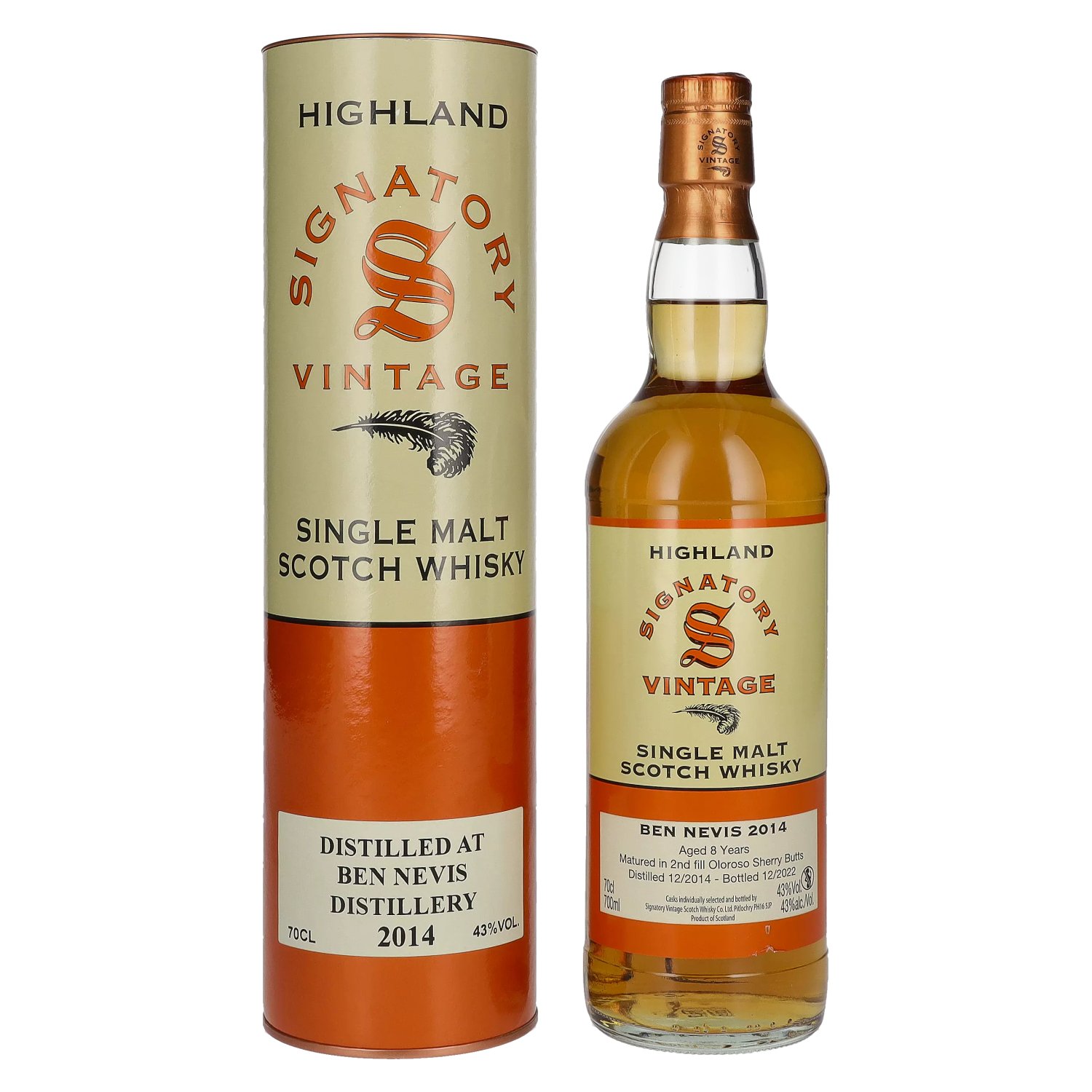 Signatory Vintage BEN NEVIS 8 Years Old Highland Single Malt Scotch Whisky 2014 43% Vol. 0,7l en boîte cadeau