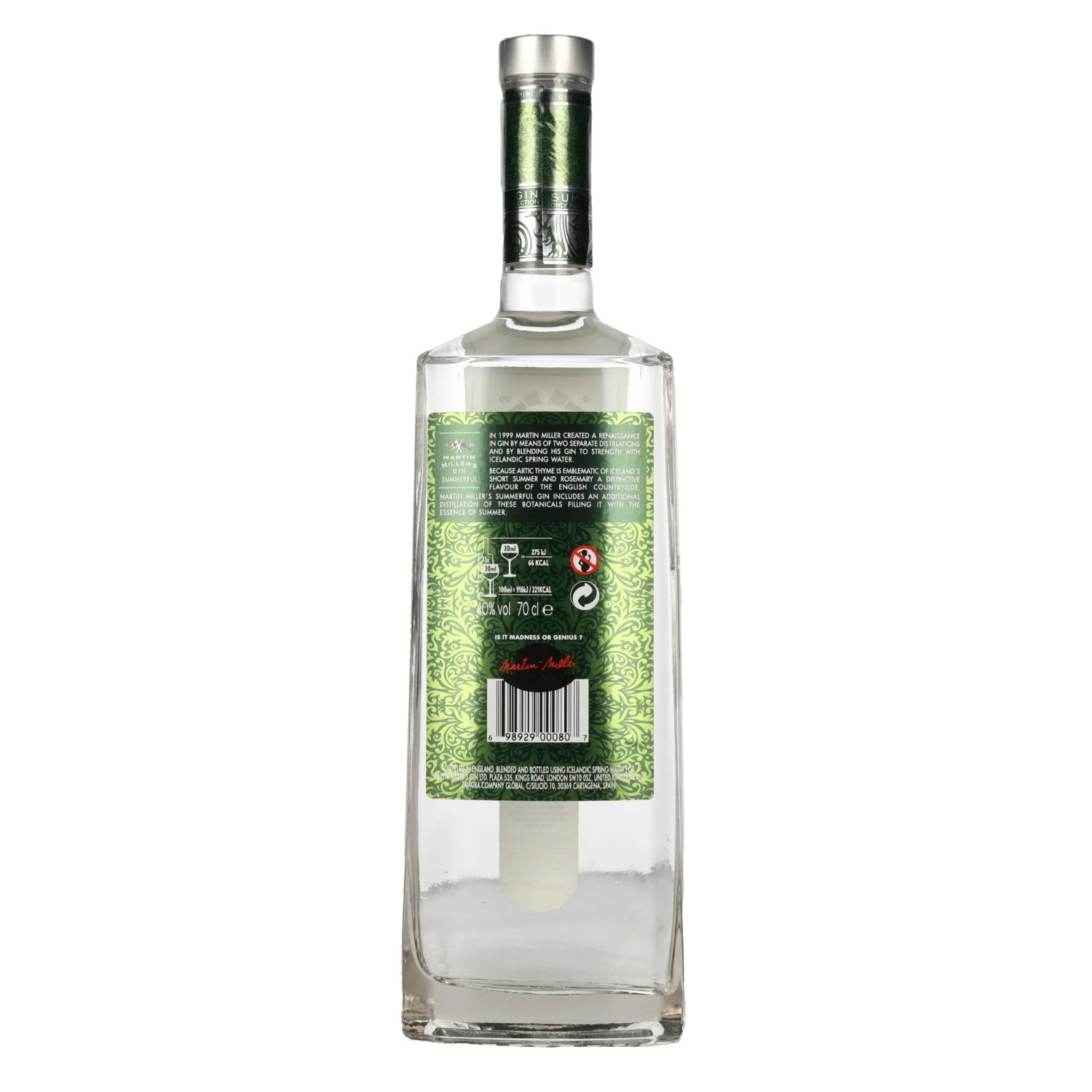 Producteur/Distillerie:Martin Miller’s Gin, Reformed Spirits Company Ltd, Plaza 535, King's Road, London SW10 0SZ, Großbritannien