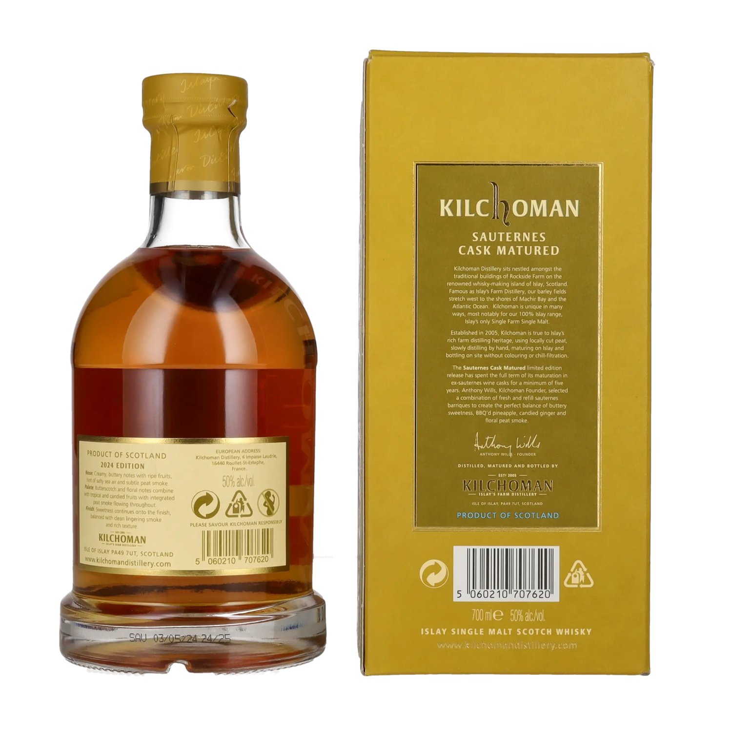 Kilchoman SAUTERNES CASK MATURED Islay Single Malt Limited Edition 2024 50% Vol. 0,7l en boîte cadeau