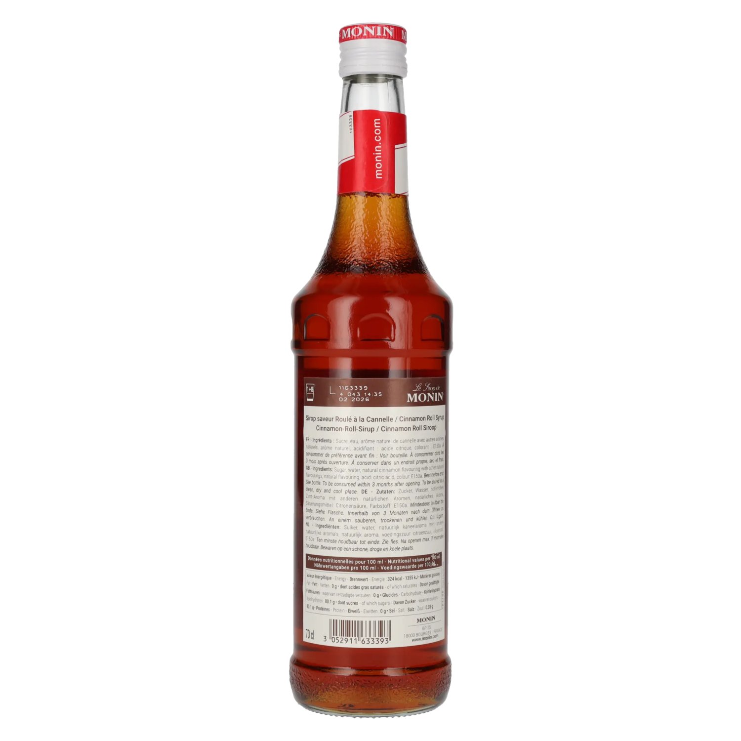 Ingrédients:Zucker, Wasser, natürliches Zimt-Aroma mit anderen natürlichen Aromen, natürliches Aroma, Säuerungsmittel: Citronensäure, Farbstoff: E350a