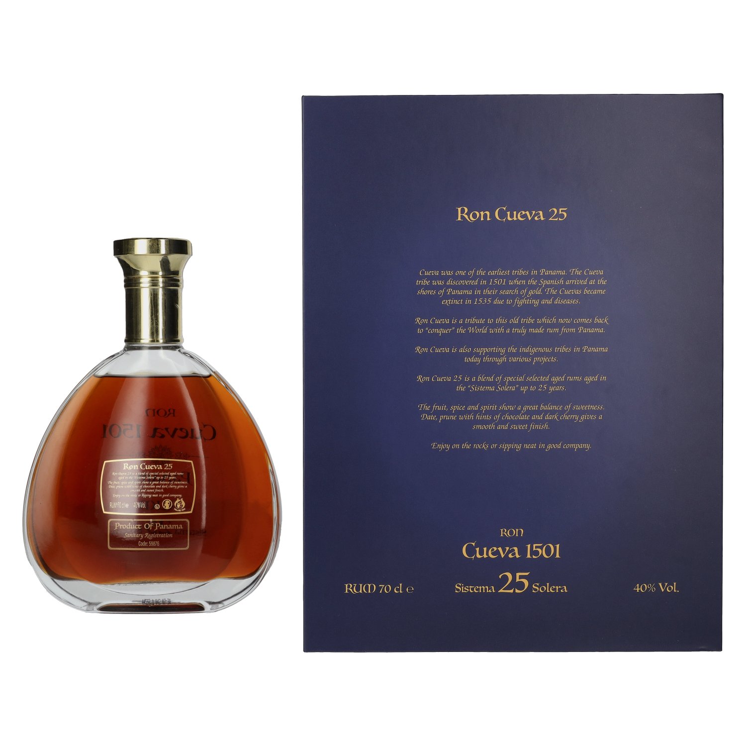 Ron Cueva 1501 Sistema 25 Solera Panama Rum 40% Vol. 0,7l en boîte cadeau