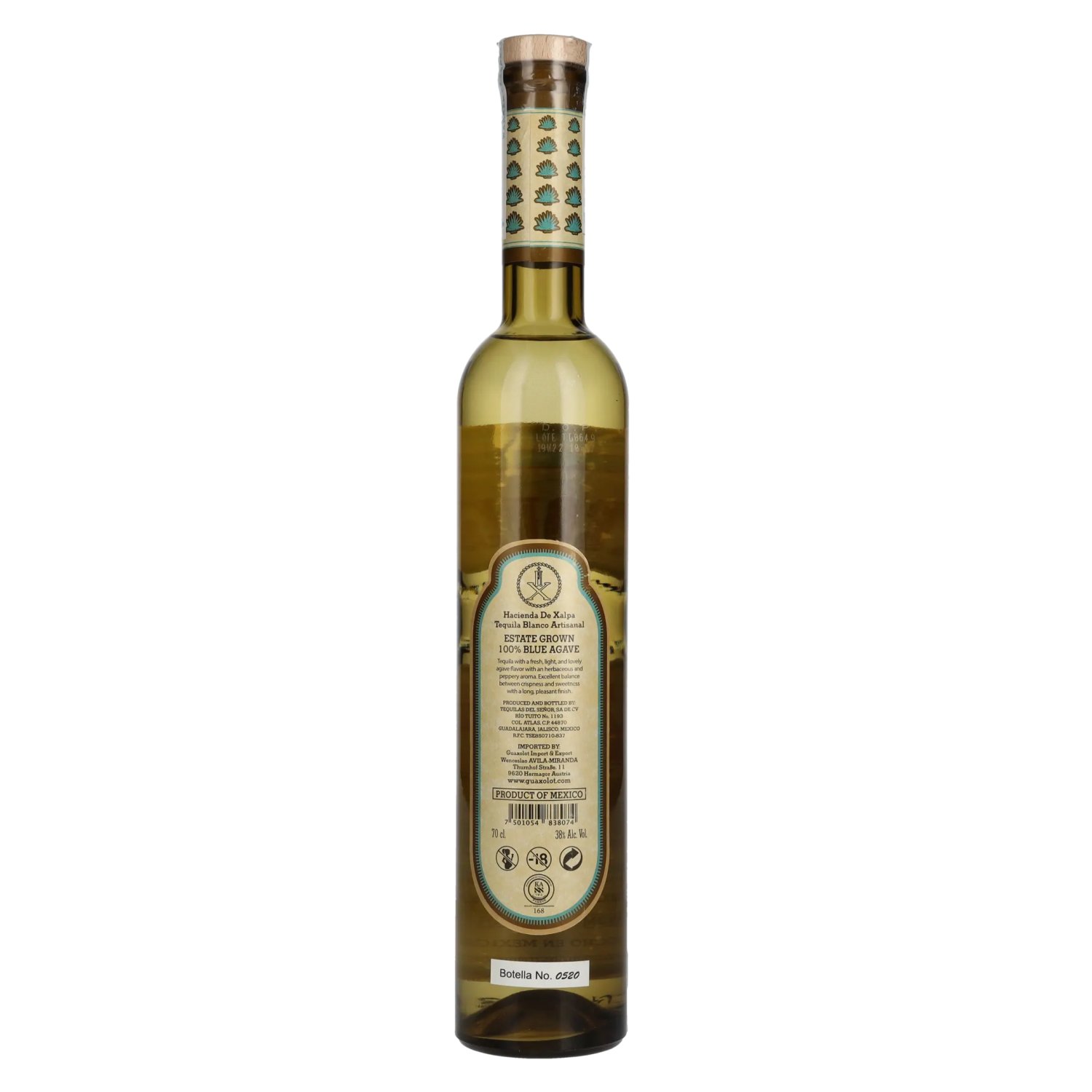 La Hacienda De Xalpa Tequila Blanco est une tequila artisanale de grande qualité, composée à 100 % d'agave bleue de Weber, produite au Mexique avec le plus grand soin et selon des méthodes traditionnelles. Cette tequila blanco convainc par sa structu Note de dégustation: Couleur : claire.