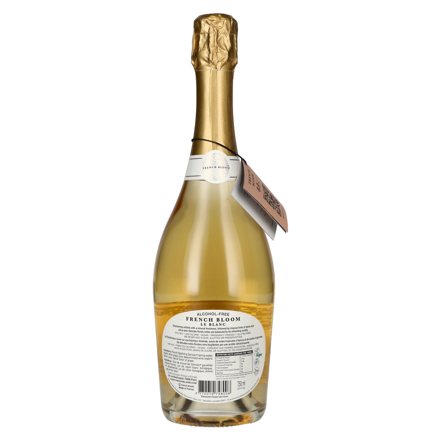 Ingrédients:French Sparkling Gensac spring water, organic white grape juice, dealcoholized wine, organic lemon juice, natural flavor of grape