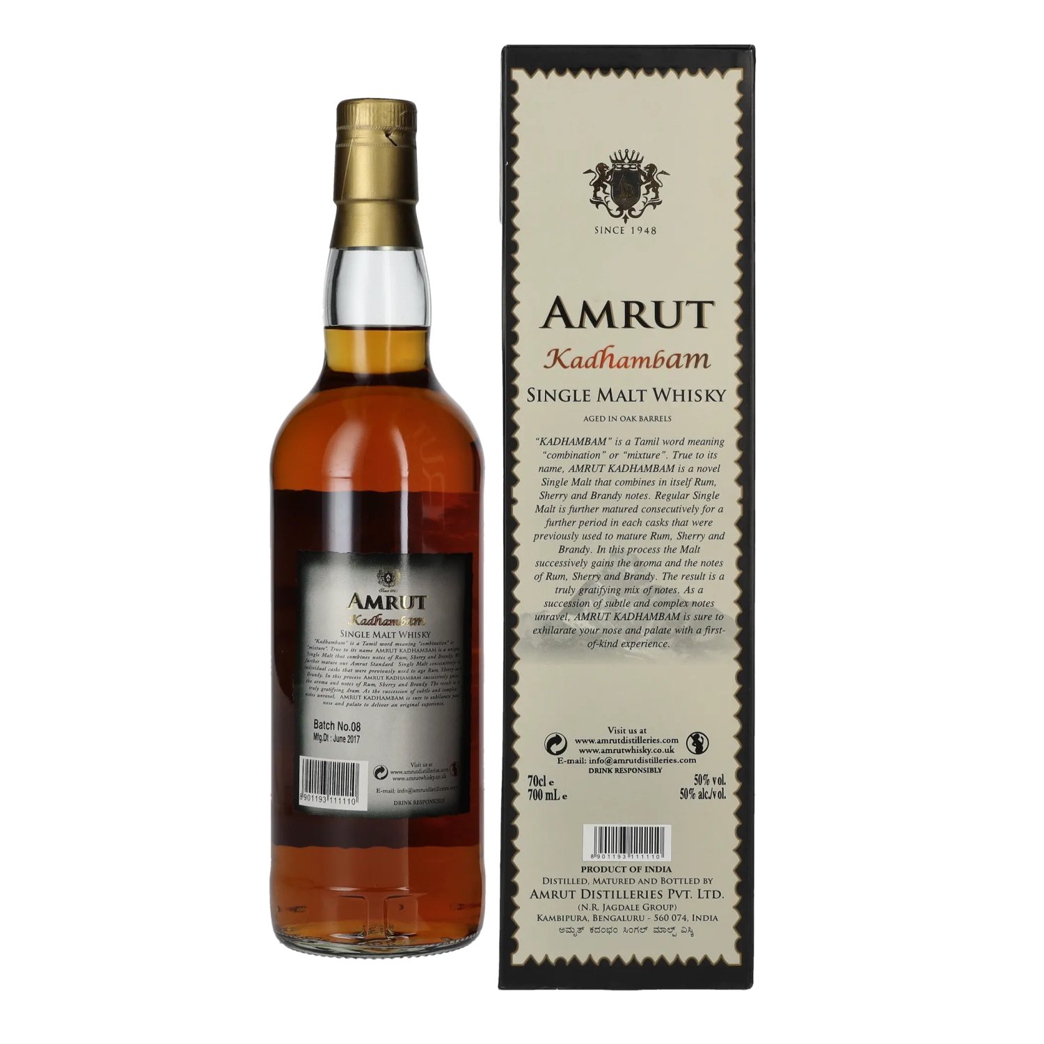 Producteur/Distillerie:Amrut Distilleries Private Ltd, (N.R.Jagdale Group), 7th Floor, JNR City Center, Raja Rammohan Roy Road, Bengaluru - 560027, Indien