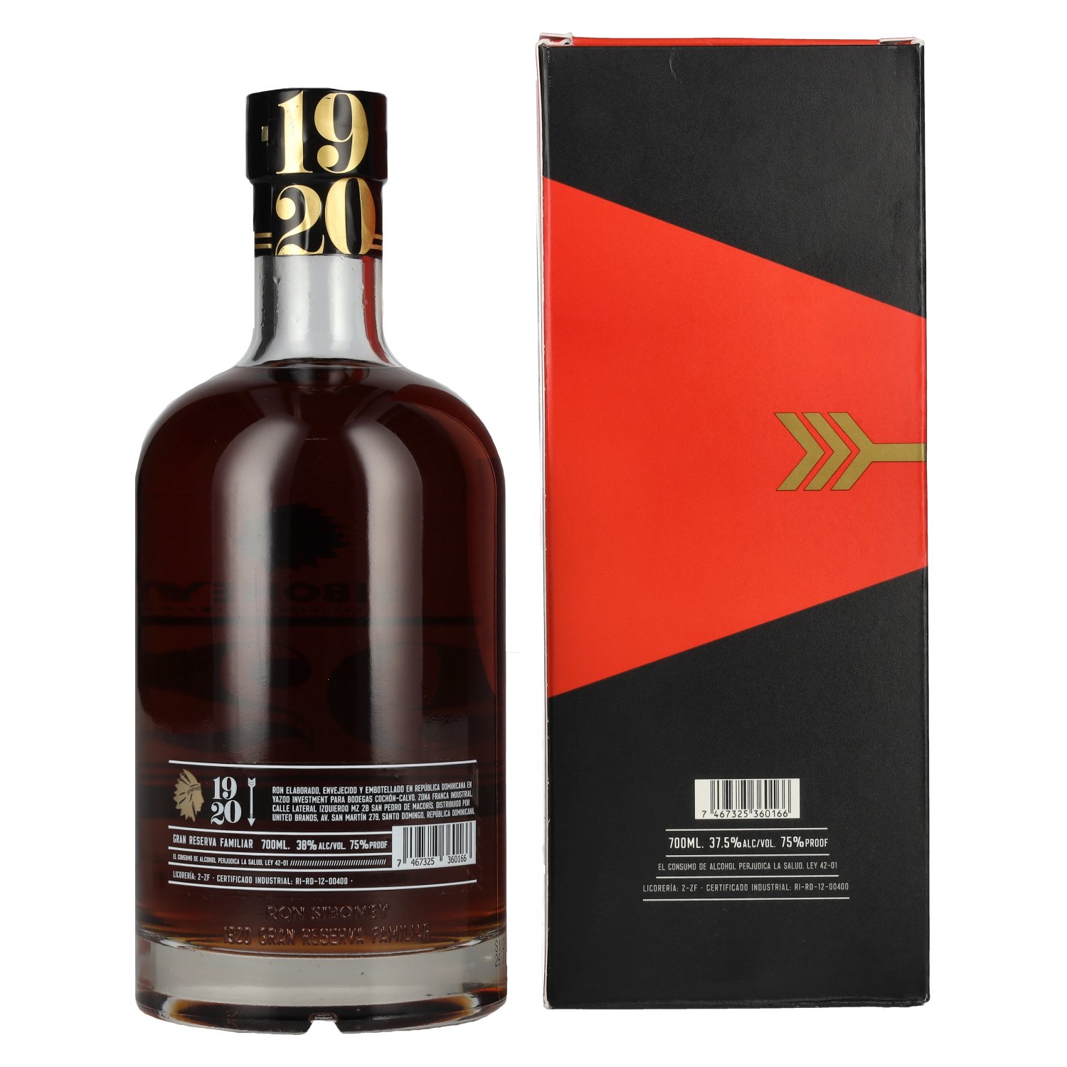 Ron Siboney 1920 GRAN RESERVA FAMILIAR Ron Dominicano 38% Vol. 0,7l en boîte cadeau