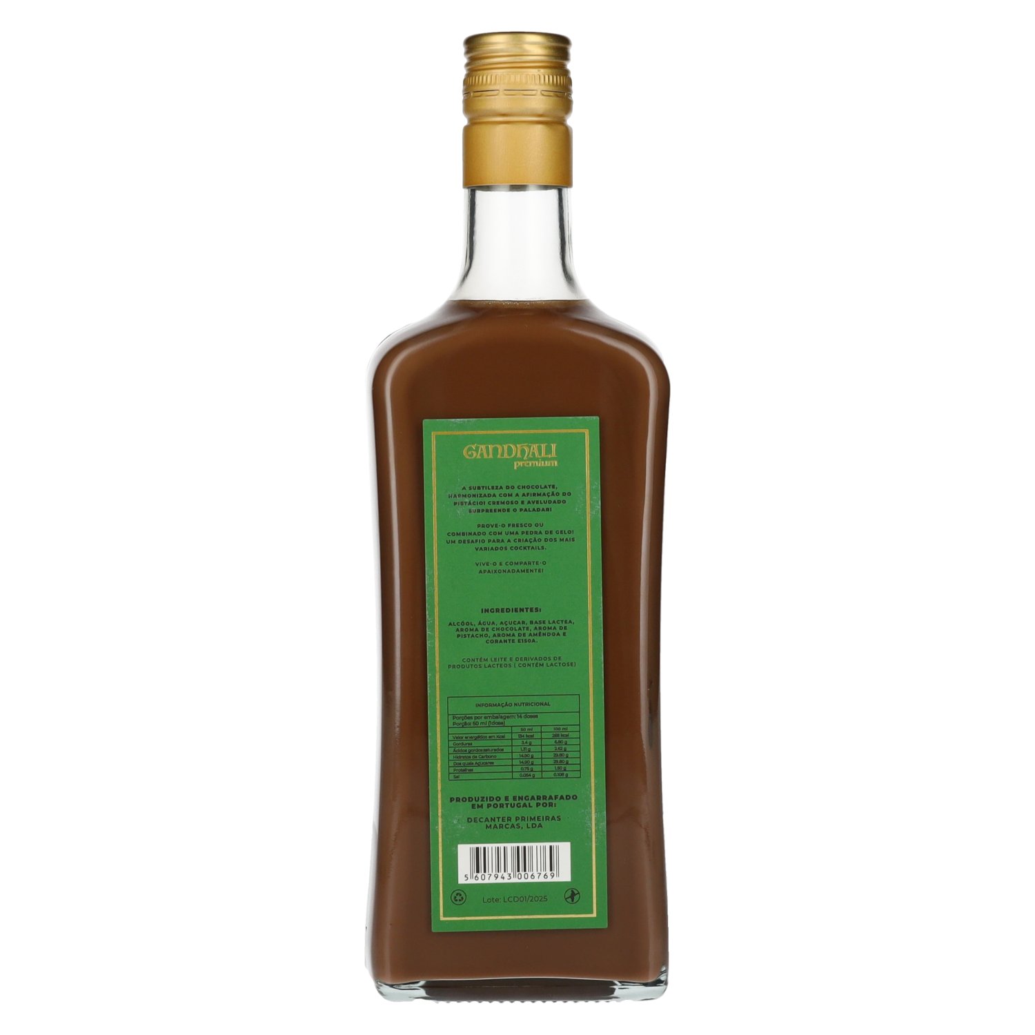 Marque: Ingrédients:Alcóol, água, acucar, base lactea, aroma de chocolate, arome de pistacho, arome de améndoa e corante E150a