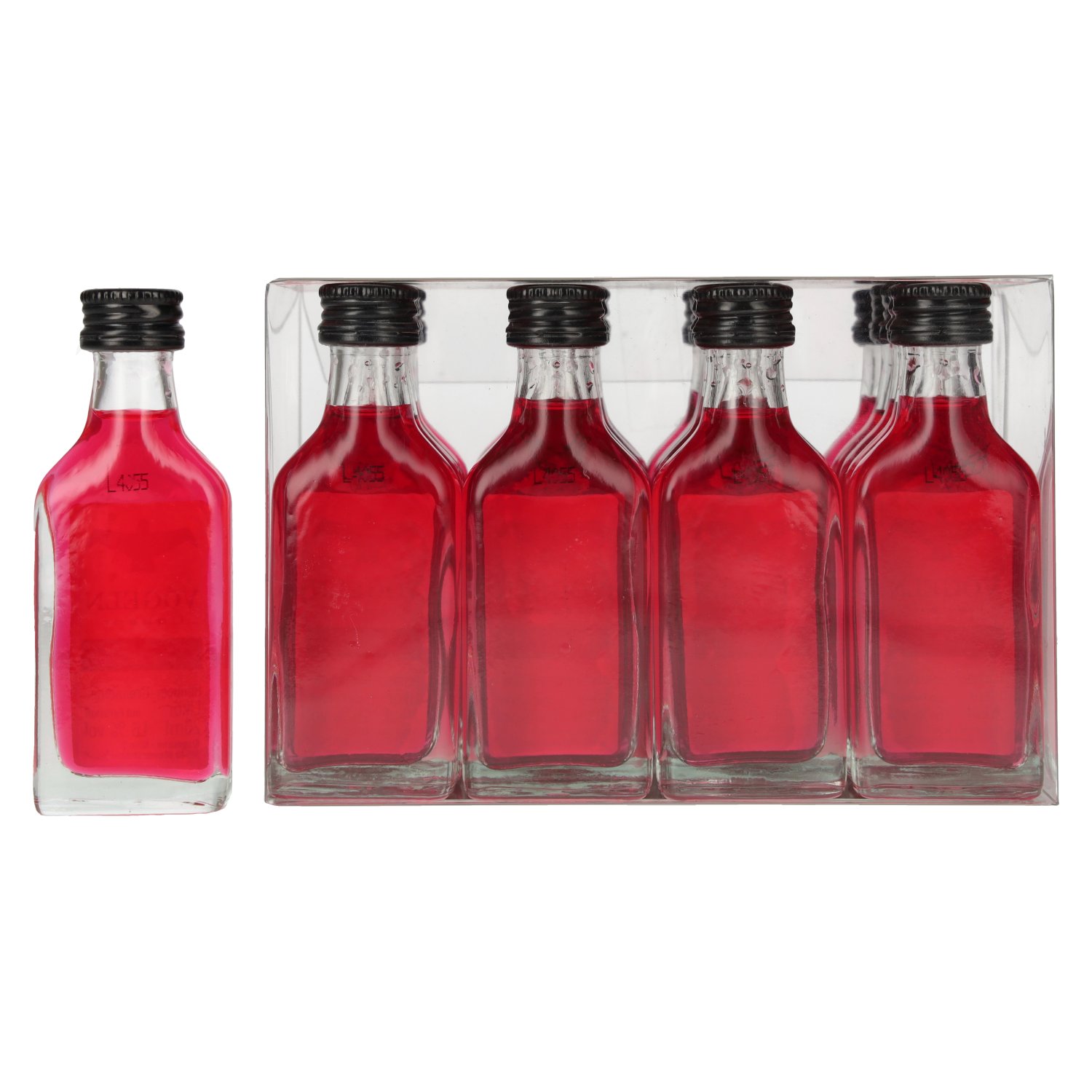 La liqueur framboise-grenadine Vögeln 16% vol. 20x0,02 l est une liqueur de fête douce et fruitée qui attire immédiatement l'attention avec son nom impertinent et son goût intense. Fabriquée à partir d'arômes de fruits de qualité supérieure, cette li Note de dégustation: Couleur : rouge rubis vif avec un léger éclat.