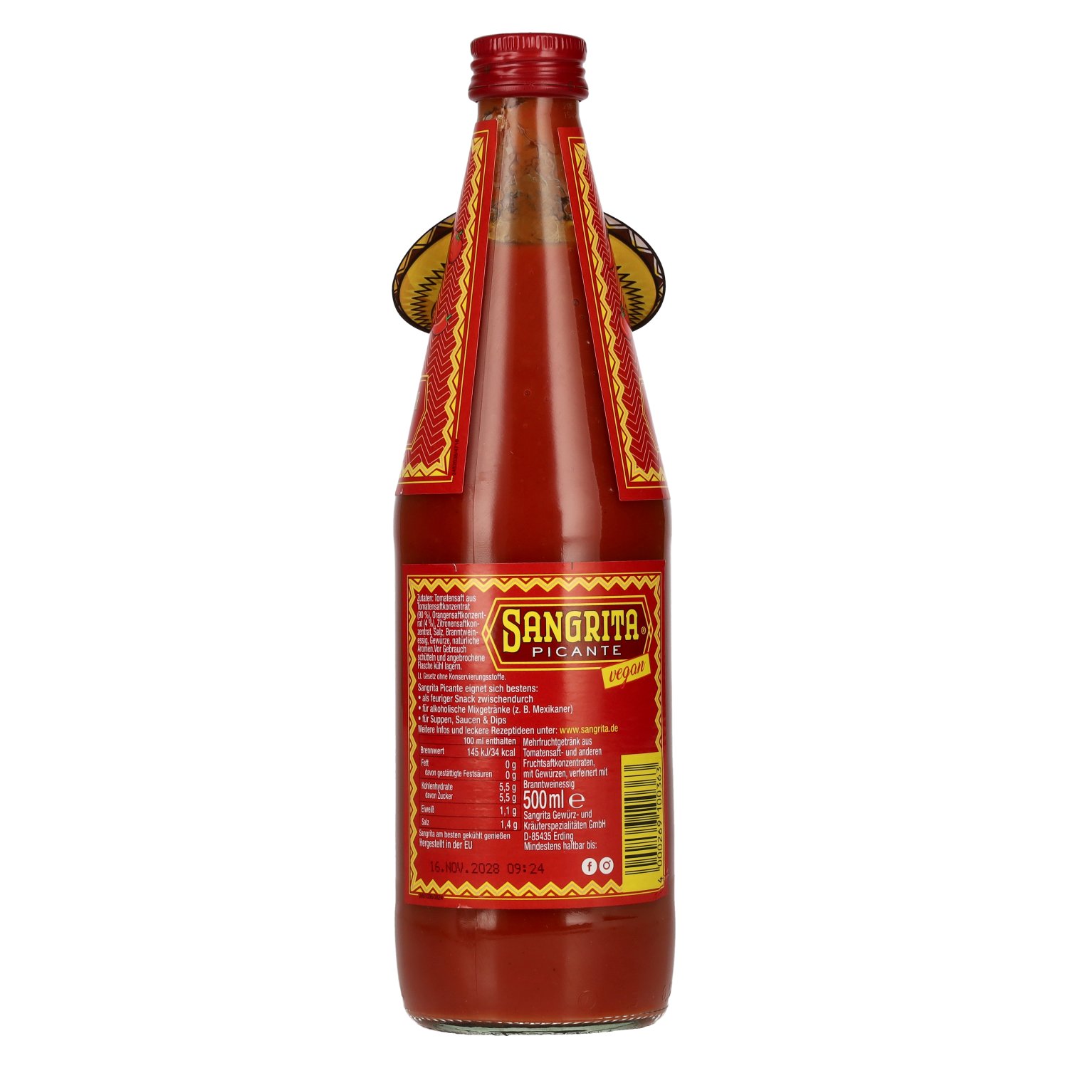 Marque: Remarques:Sangrita am besten gekühlt genießen. Vor Gebrauch schütteln und angebrochene Flasche kühl lagern. Lt. Gesetz ohne Konservierungsstoffe.