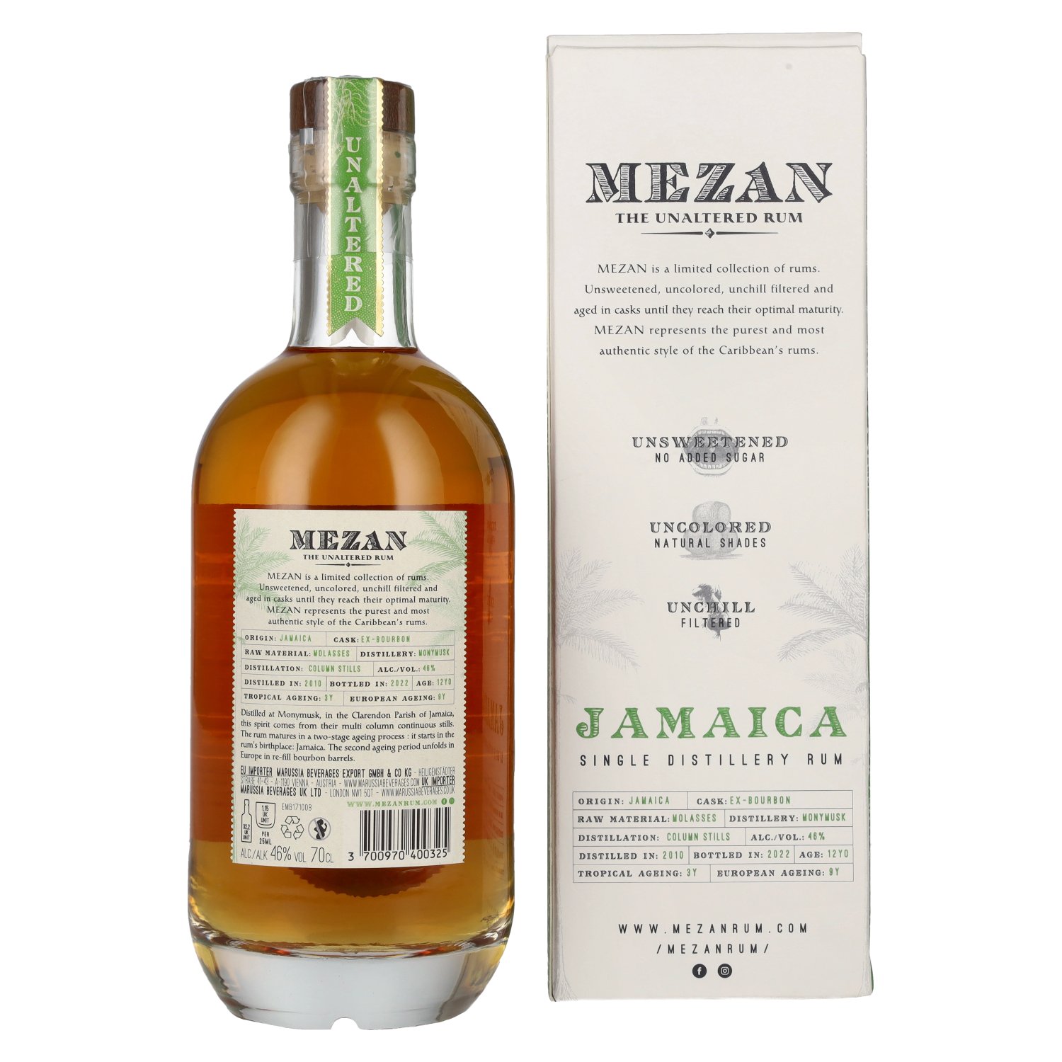 Mezan The Unaltered Rum Jamaica 2010 46% Vol. 0,7l en boîte cadeau