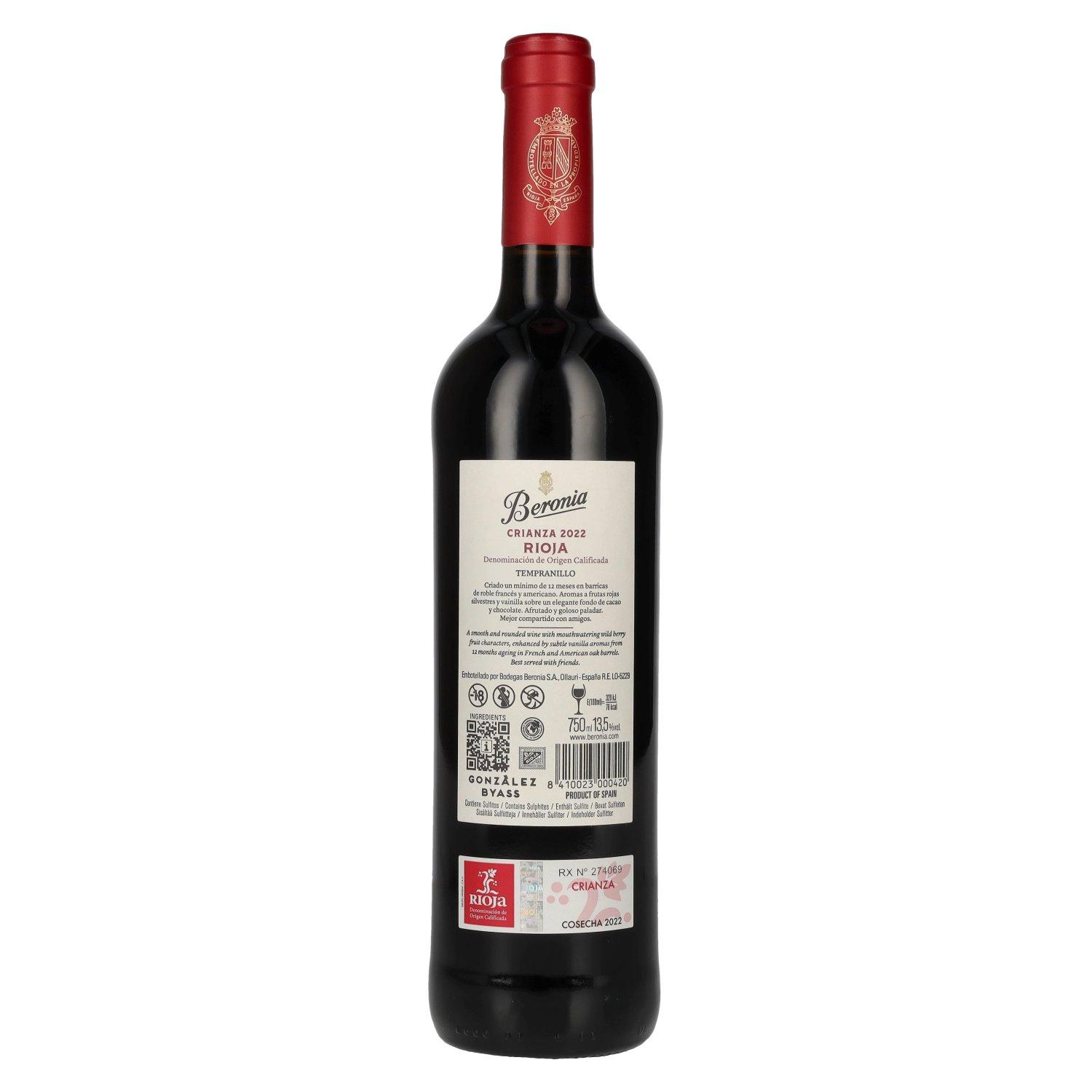 Producteur/Distillerie:BODEGAS BERONIA S.A., Carretera de Ollauri a Nájera, Km.1.8, 26220 Ollauri, La Rioja, Spanien