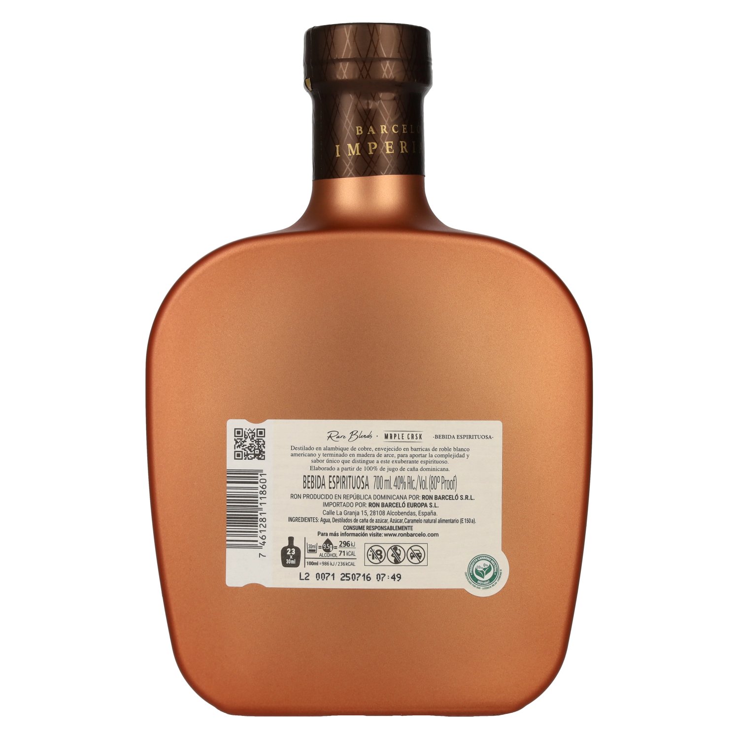 Ingrédients:Agua, Destilados de caña de azúcar, Azúcar, Caramelo natural alimentario (E150a)