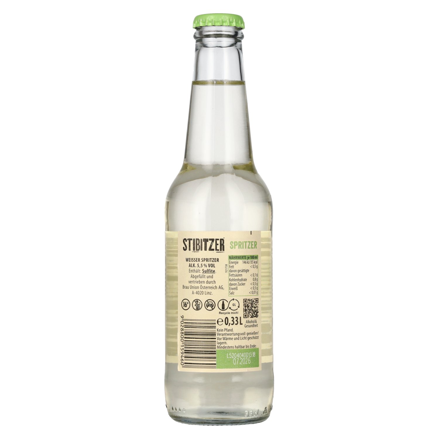 Le Stibitzer Weisser Spritzer 5,5% vol. 0,33 l est un Weißer Spritzer autrichien rafraîchissant qui propose la boisson estivale populaire à base de vin blanc et de soda dans une bouteille en verre pratique et prête à boire. Ce spritzer prêt à boire a Note de dégustation: Le nez révèle des arômes frais et fruités avec de fines notes d'agrumes. Au palais, le Spritzer se présente léger, pétillant et rafraîchissant avec des arômes fruités de vin blanc. La finale est fraîche, animée et persistante.