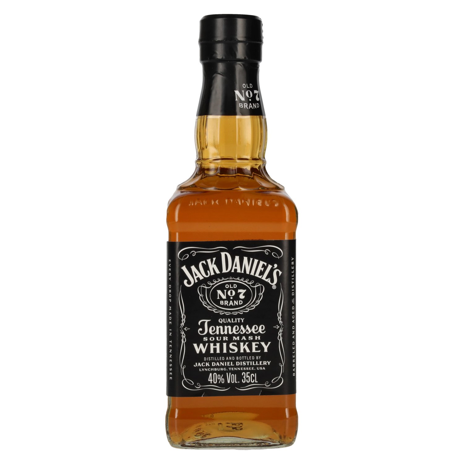 Jack Daniel's Tennessee Whiskey in een fles van 0,35 liter vertegenwoordigt de wereldberoemde stijl van een van de meest traditionele Tennessee whiskeys en biedt het klassieke karakter van het merk in een compacte vorm. Deze Amerikaanse whiskey wordt Proefnotitie: Kleur: Warm goud tot amber, helder en briljant.