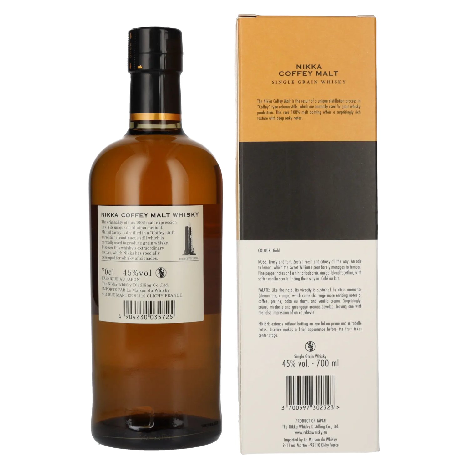 De Nikka Coffey Malt Whisky 45% Vol. 0.7 l + GB is een unieke Japanse whisky gedistilleerd in de befaamde Nikka Distillery met behulp van de traditionele Coffey stills, die oorspronkelijk zijn ontwikkeld voor de productie van graanwhisky.